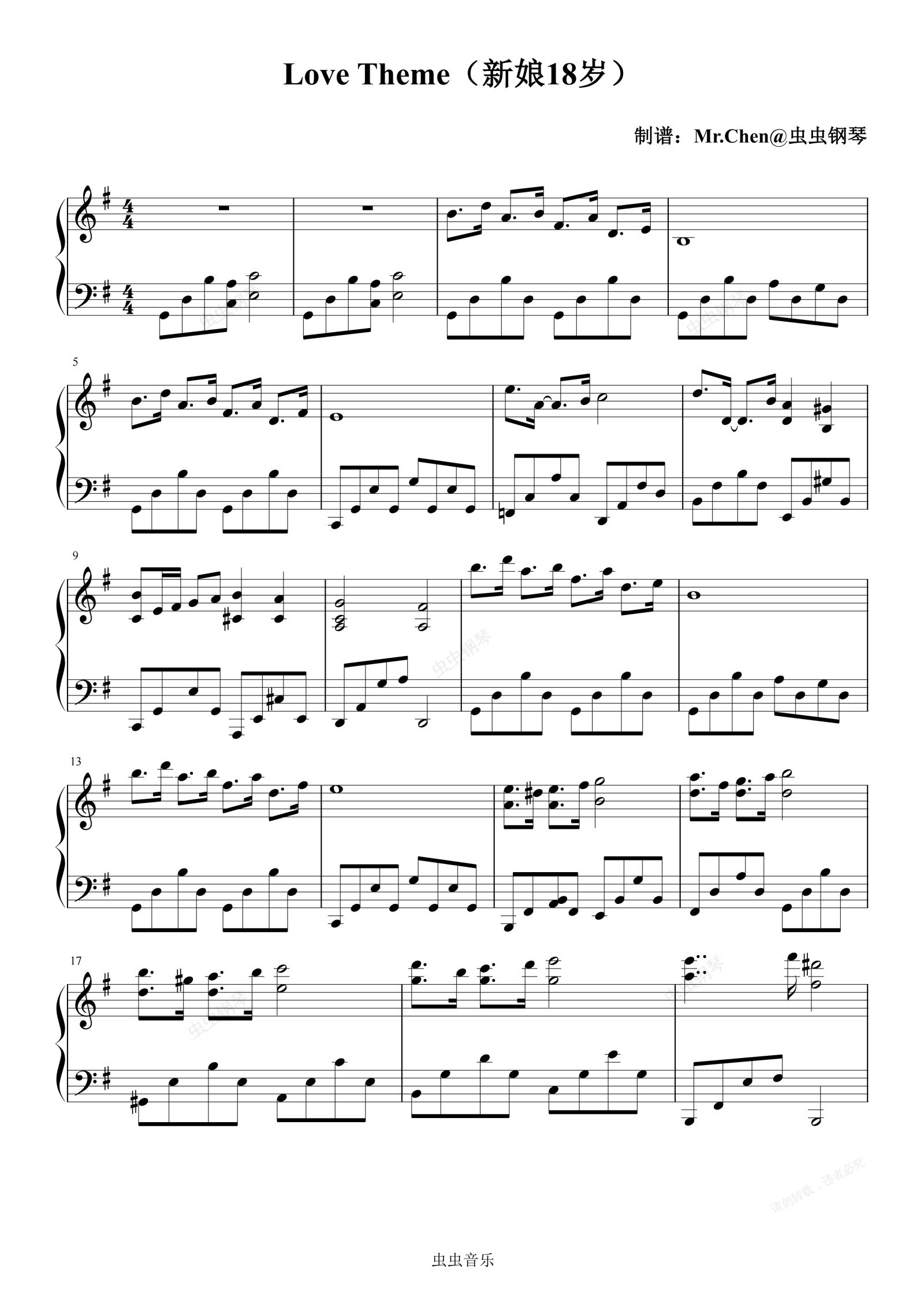 钢琴谱:Love Theme - 韩剧《新娘十八岁》插曲