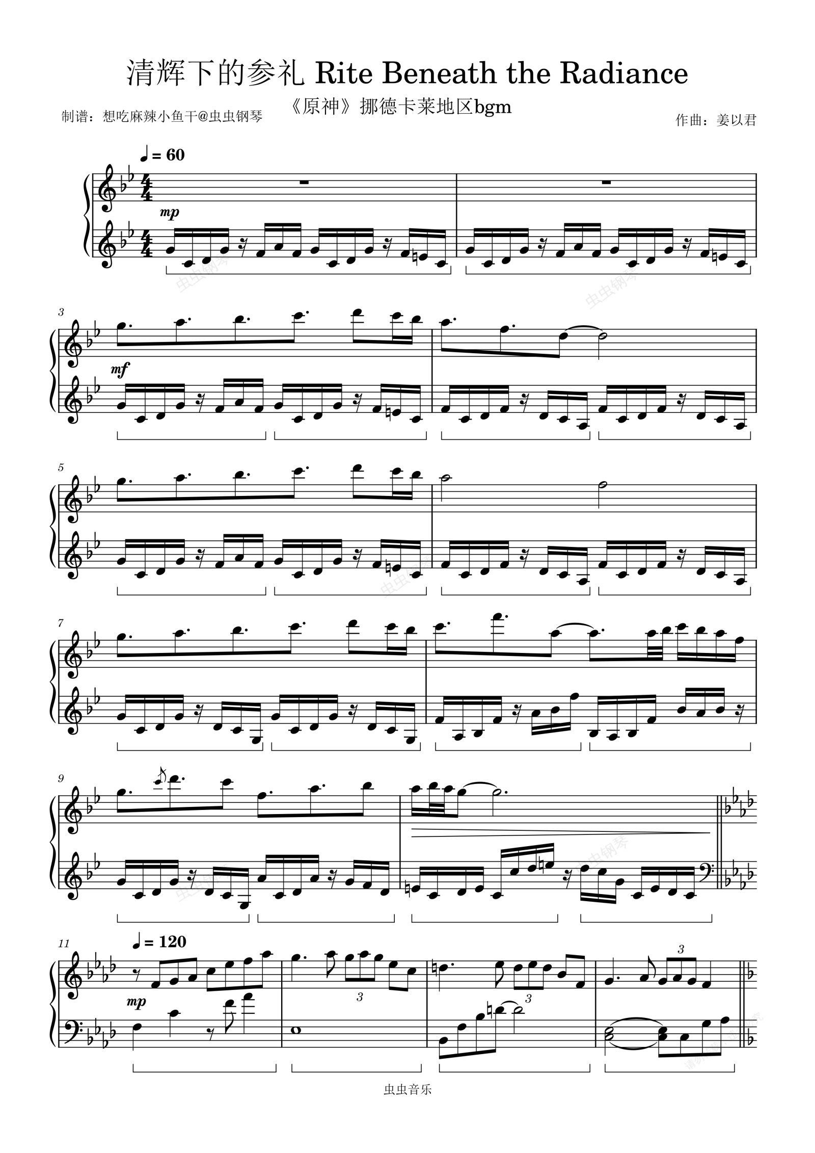 钢琴谱:清辉下的参礼(《原神》挪德卡莱地区bgm)