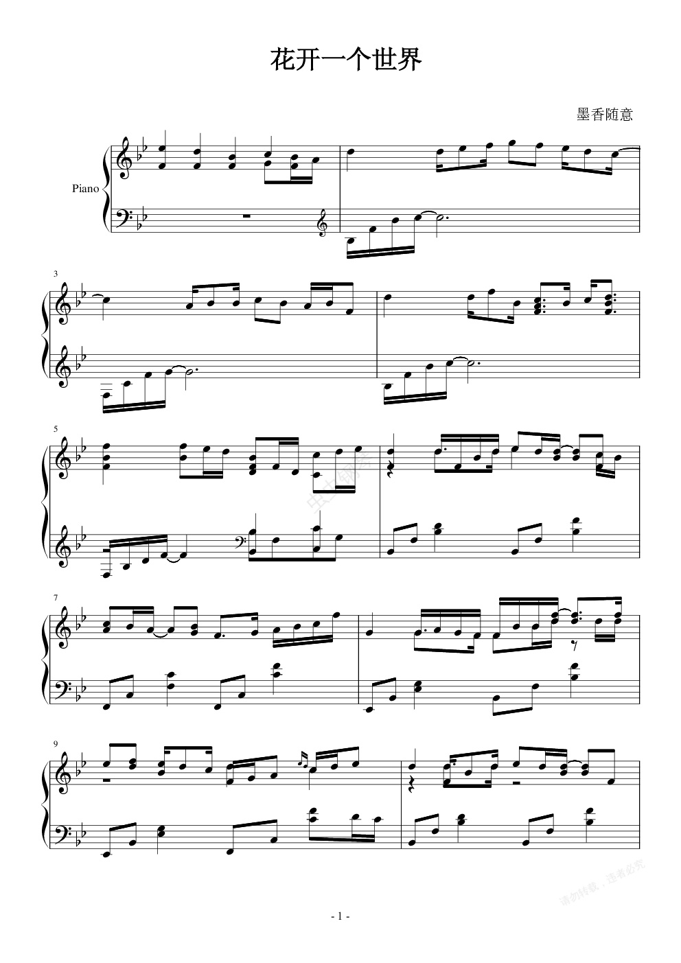 钢琴谱:给血腥残阳——花开一个世界