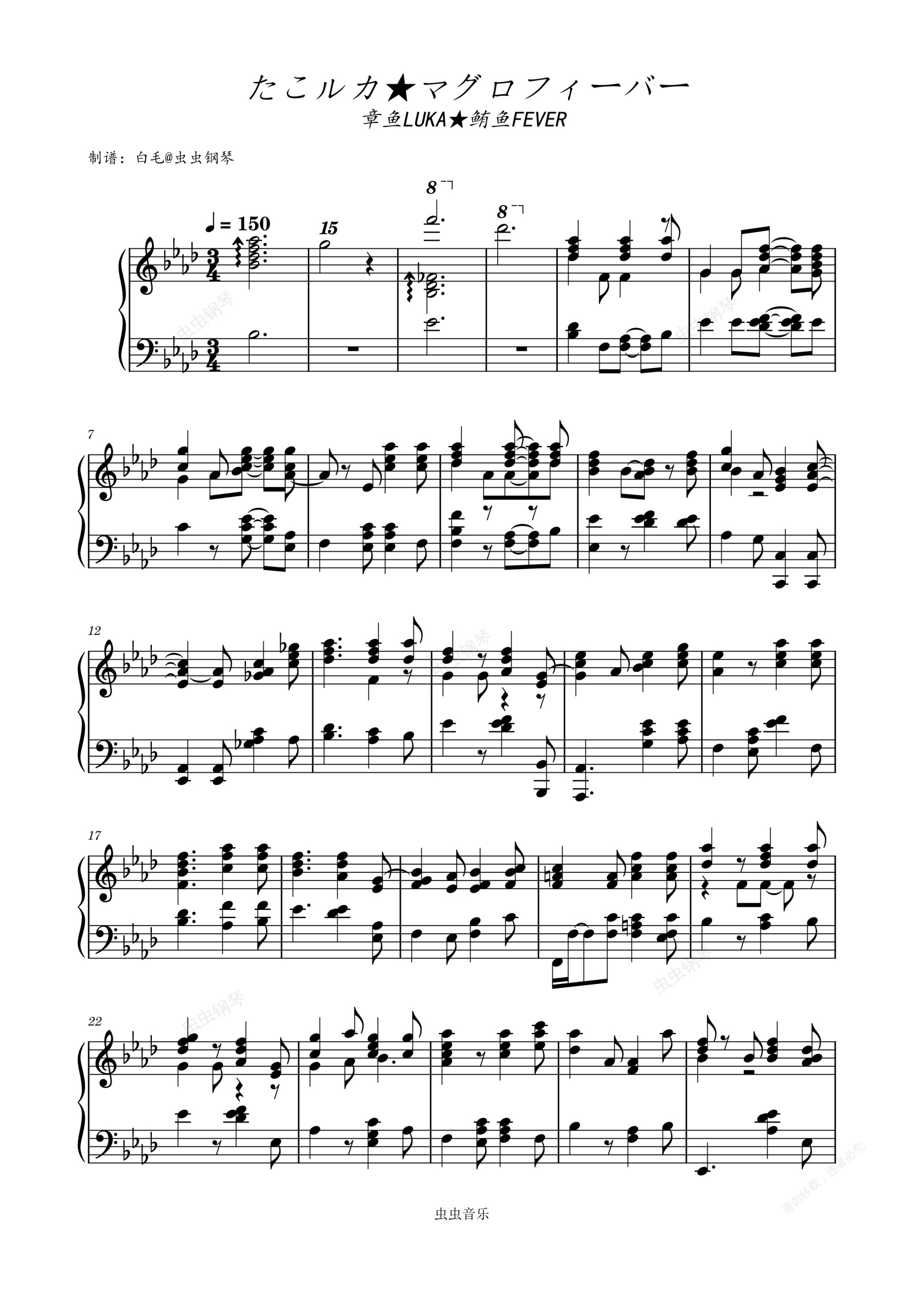 钢琴谱:たこルカ★マグロフィーバー (章鱼LUKA★鲔鱼FEVER )