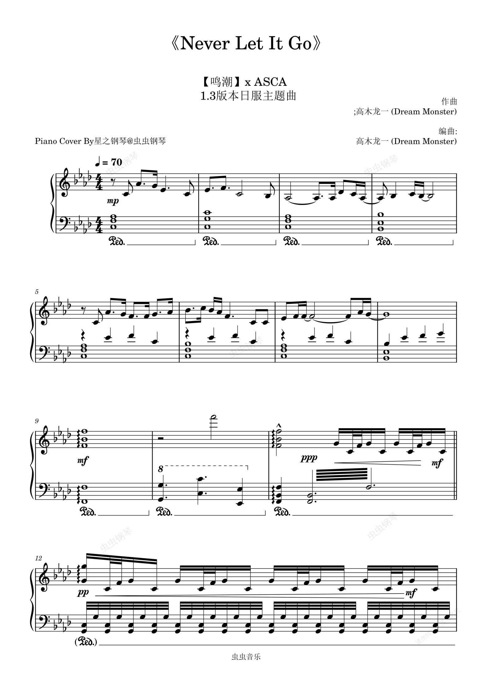 钢琴谱:【鸣潮】日服主题曲《Never Let It Go》钢琴华丽独奏版~星之钢琴~