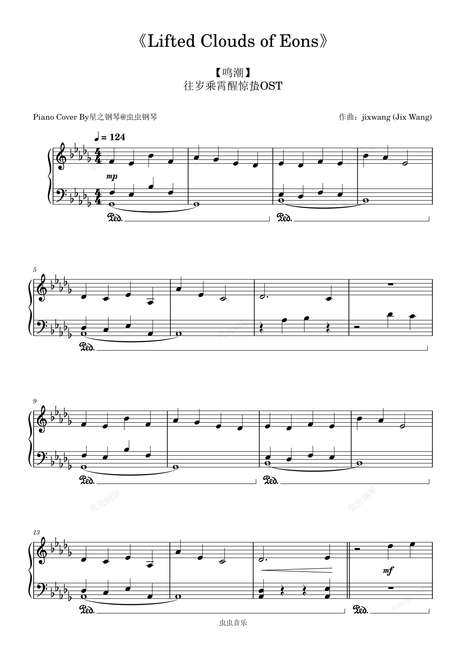 钢琴谱:【鸣潮】往岁乘霄醒惊蛰《Lifted Clouds of Eons》钢琴独奏版~星之钢琴~