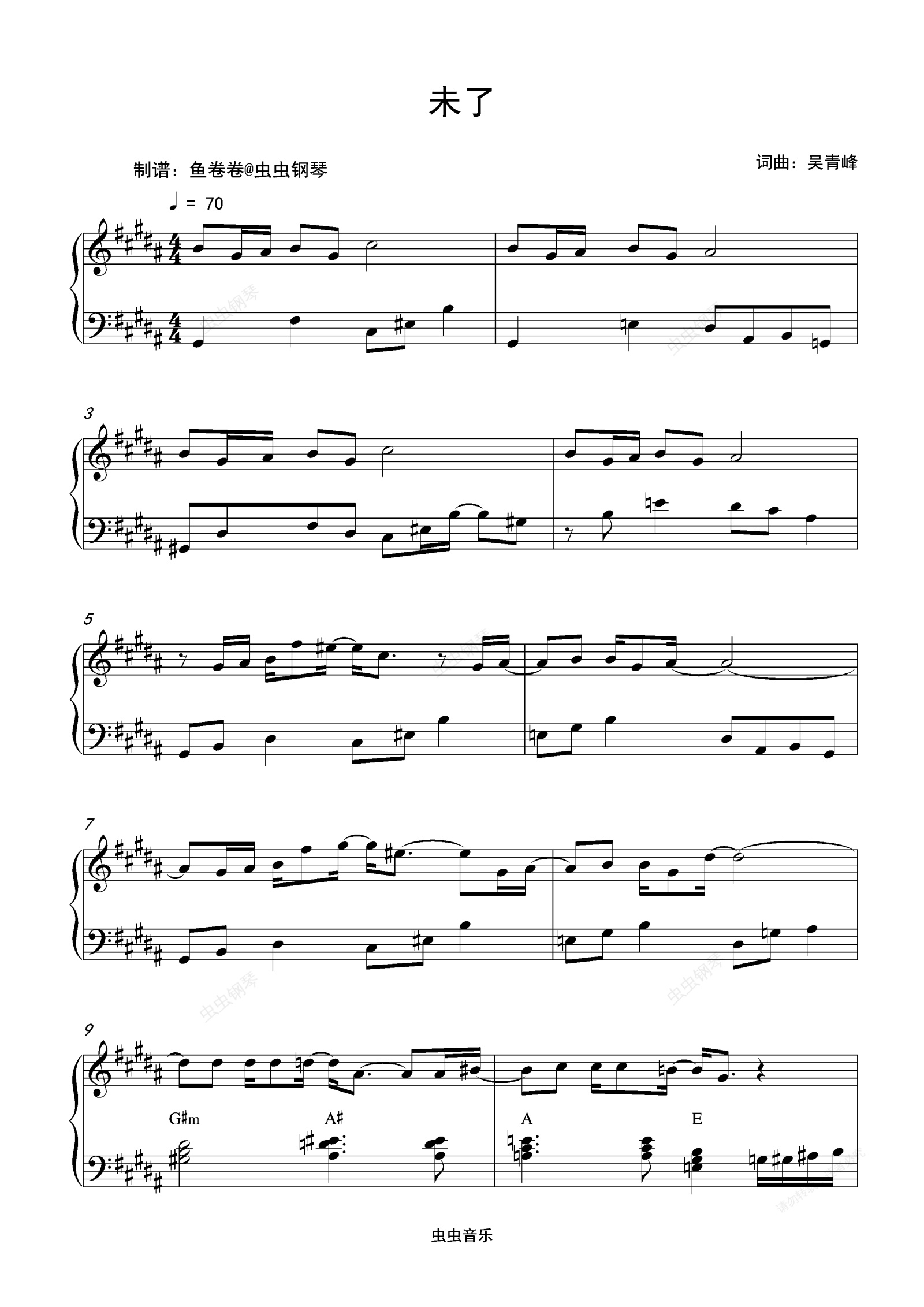 钢琴谱:未了-苏打绿 B调钢琴谱