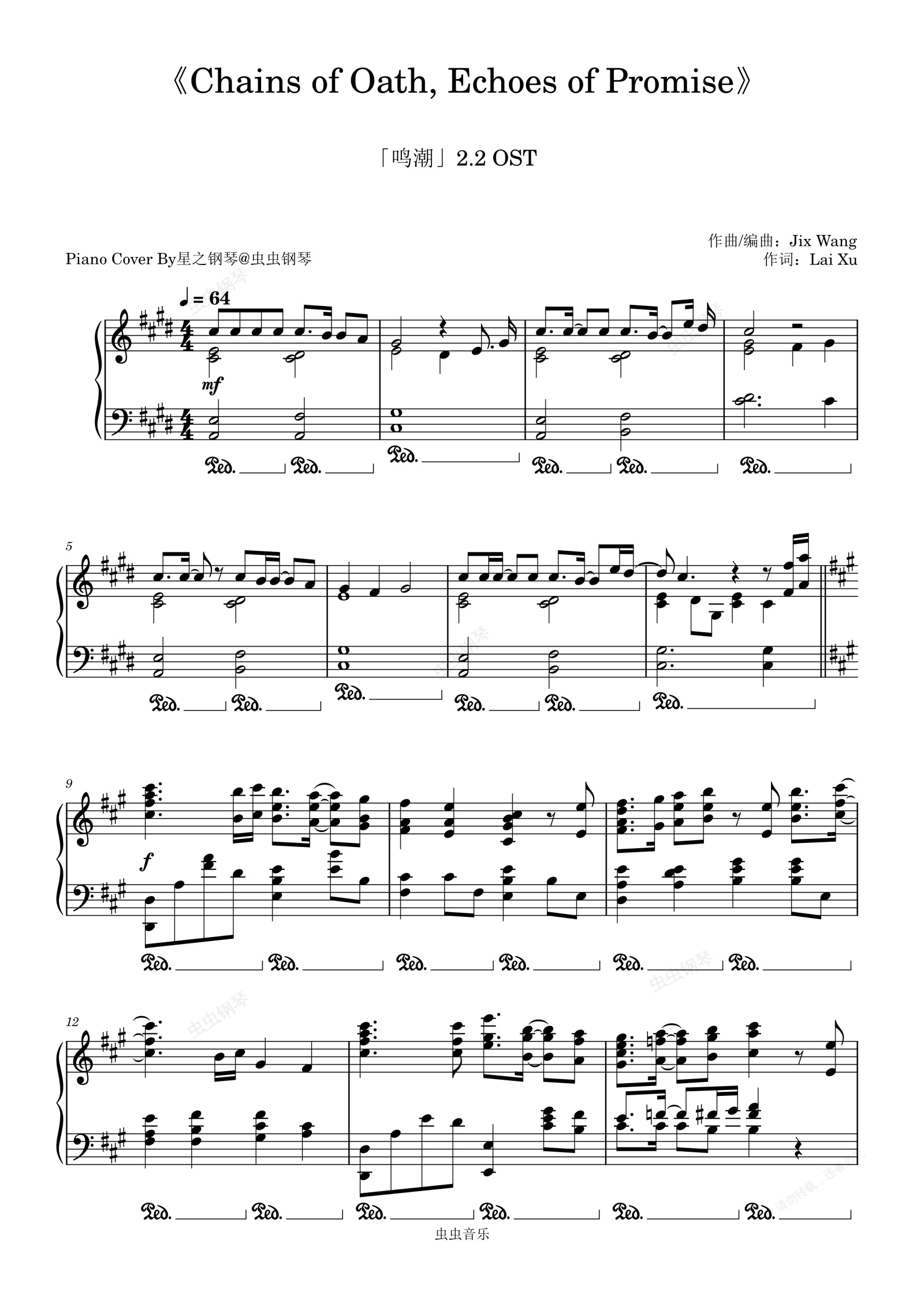 钢琴谱:【鸣潮】2.2OST《Chains of Oath, Echoes of Promise》钢琴独奏版~星之钢琴~