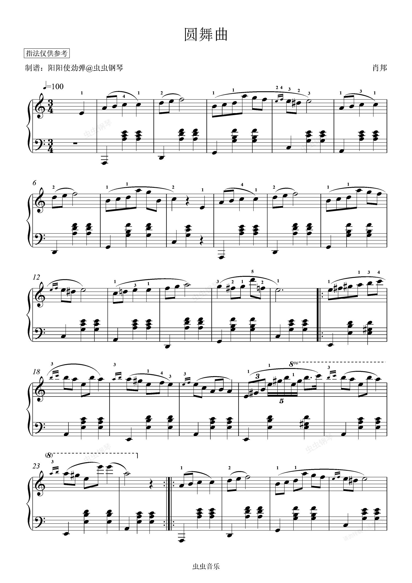 钢琴谱:肖邦-圆舞曲(初级+指法)