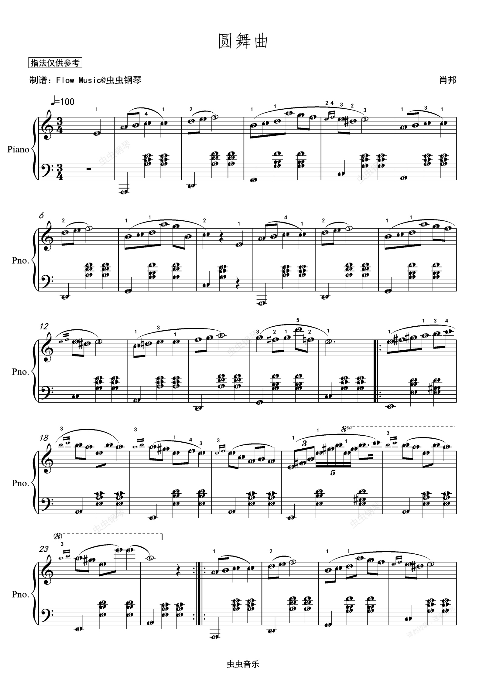 钢琴谱:肖邦-圆舞曲(指法+简五谱版)