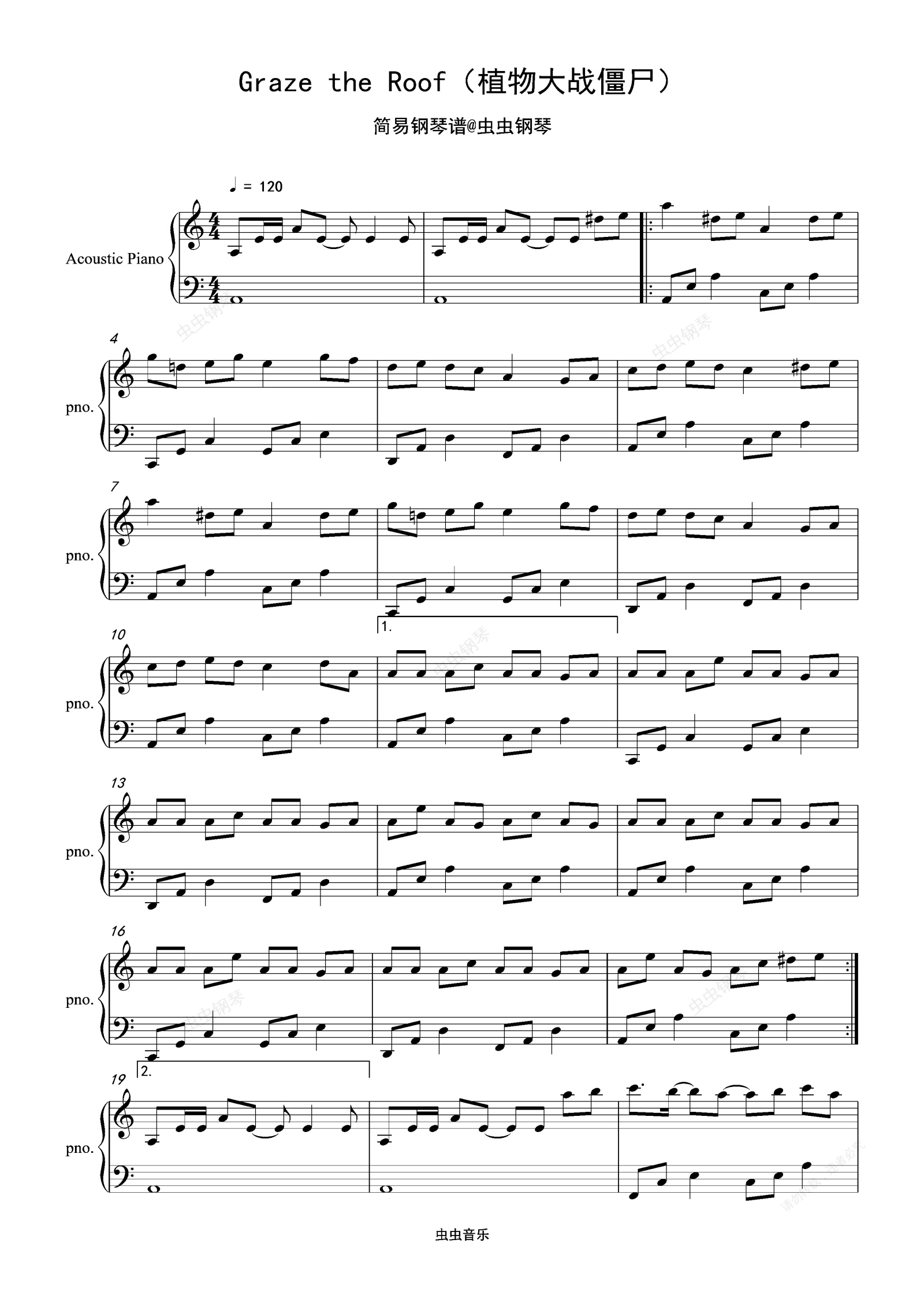 钢琴谱:Graze the Roof(植物大战僵尸) C调独奏