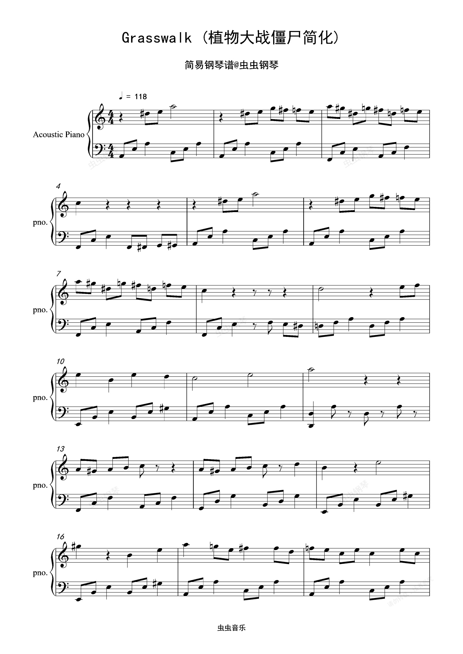 钢琴谱:Grasswalk (植物大战僵尸) C调独奏