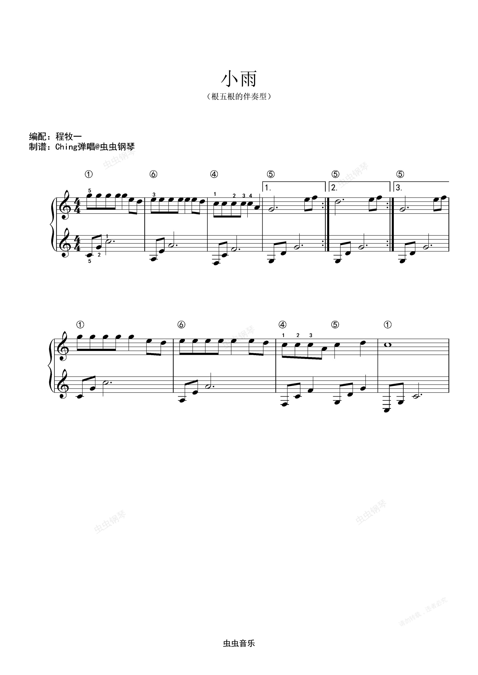 钢琴谱:【魔法钢琴】小雨(根五根伴奏版)