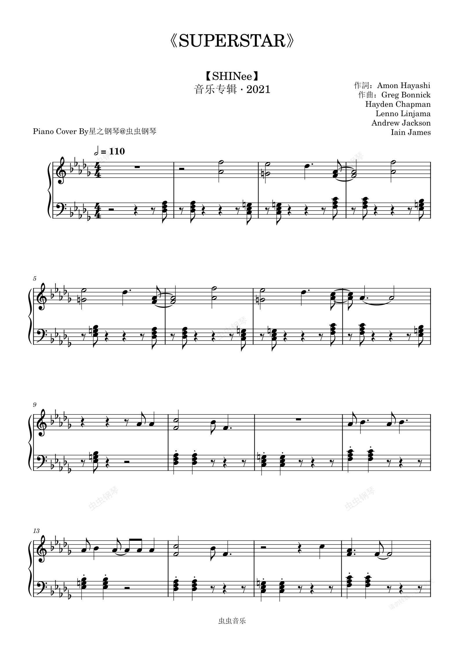钢琴谱:【SHINee】《SUPERSTAR》钢琴还原版~星之钢琴~