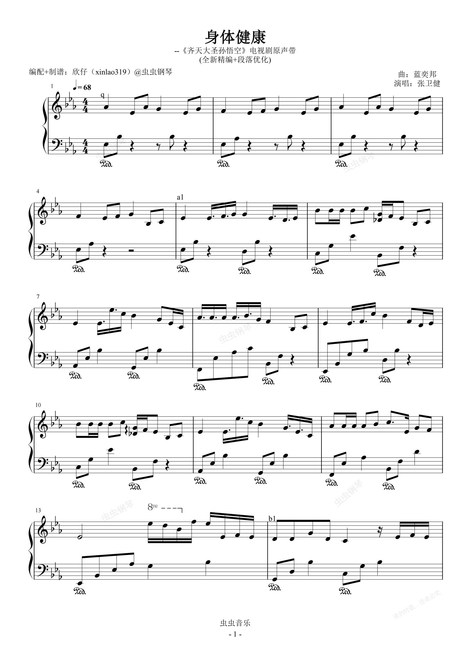 钢琴谱:身体健康(原调降E、张卫健、全新精编+段落优化)