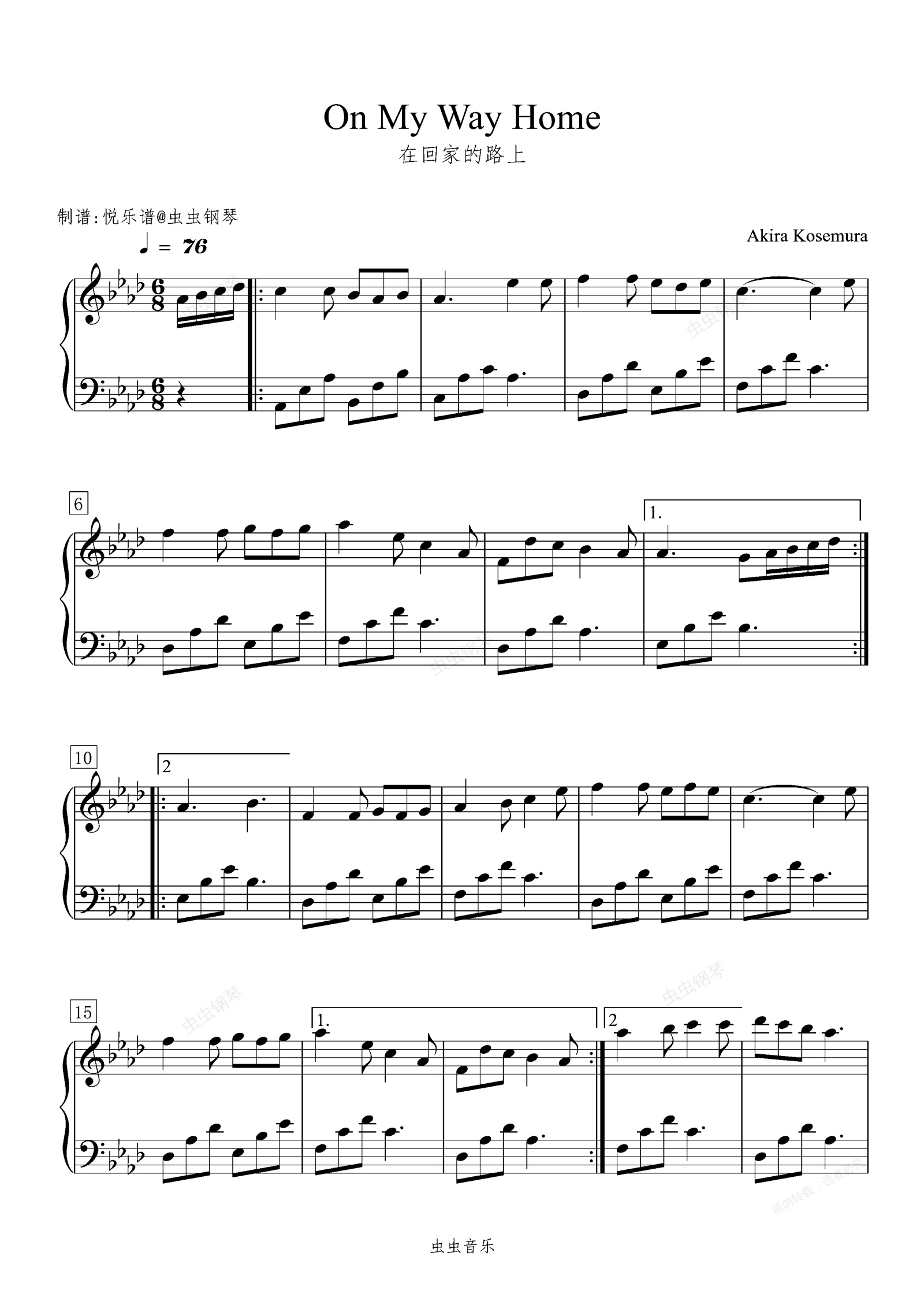钢琴谱:在回家的路上/On My Way Home 【治愈】