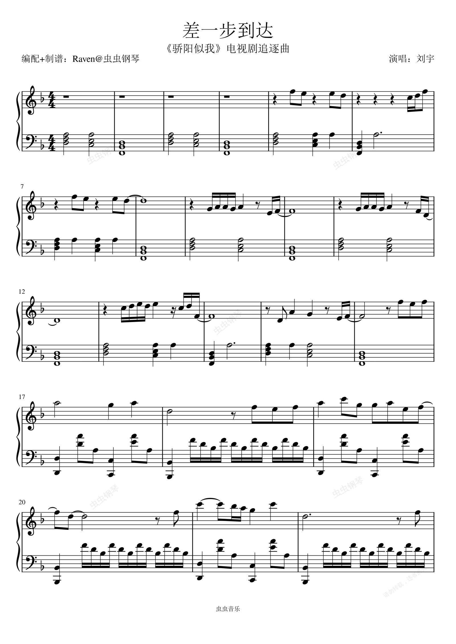 钢琴谱:差一步到达 超绝宿命感钢琴独奏 骄阳似我电视剧追逐曲