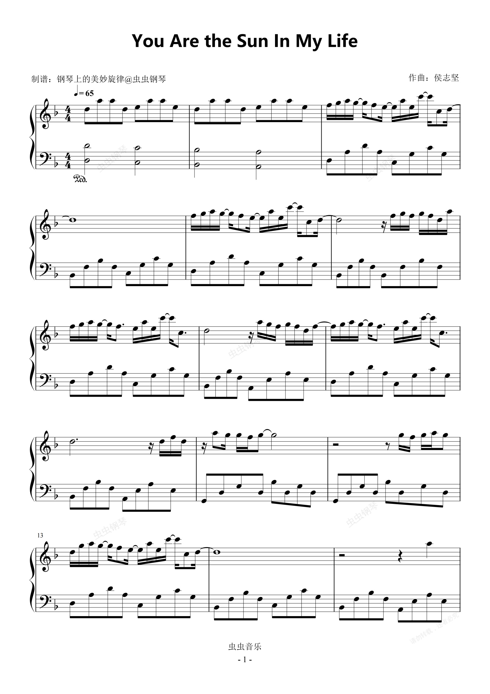 钢琴谱:You Are the Sun In My Life 原调简易版 卢苑仪