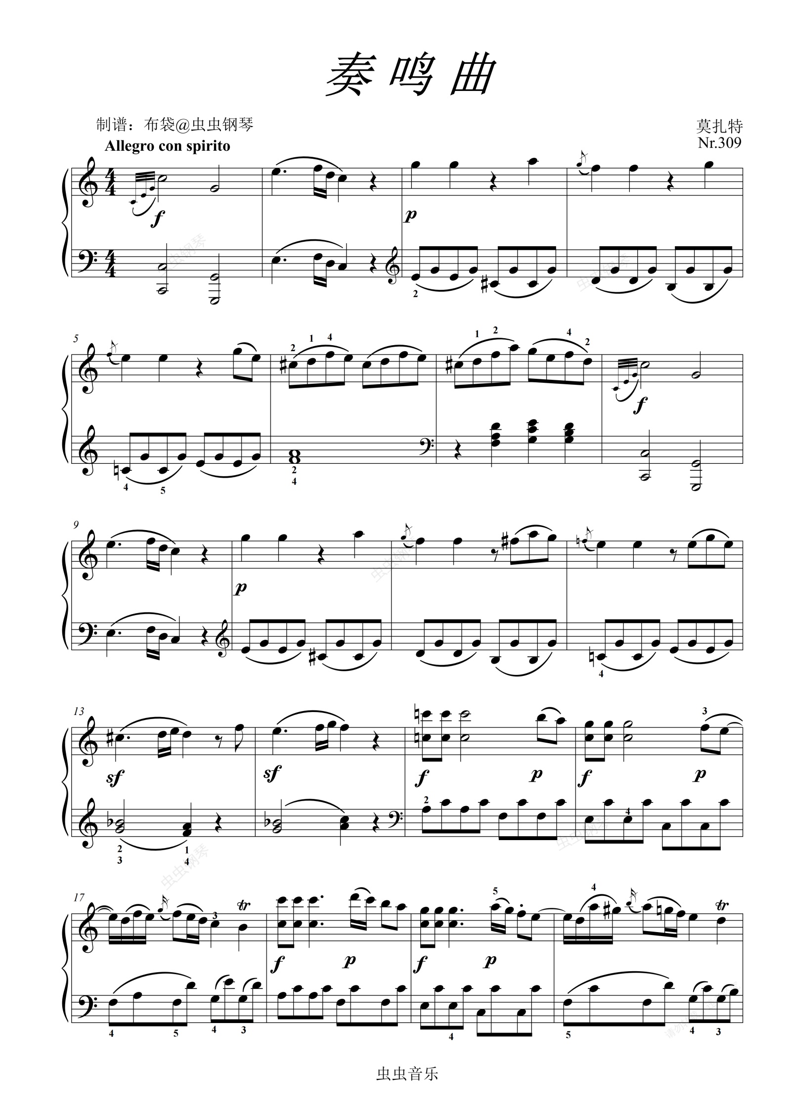 钢琴谱:奏鸣曲-莫扎特No309 C调 超级完美版