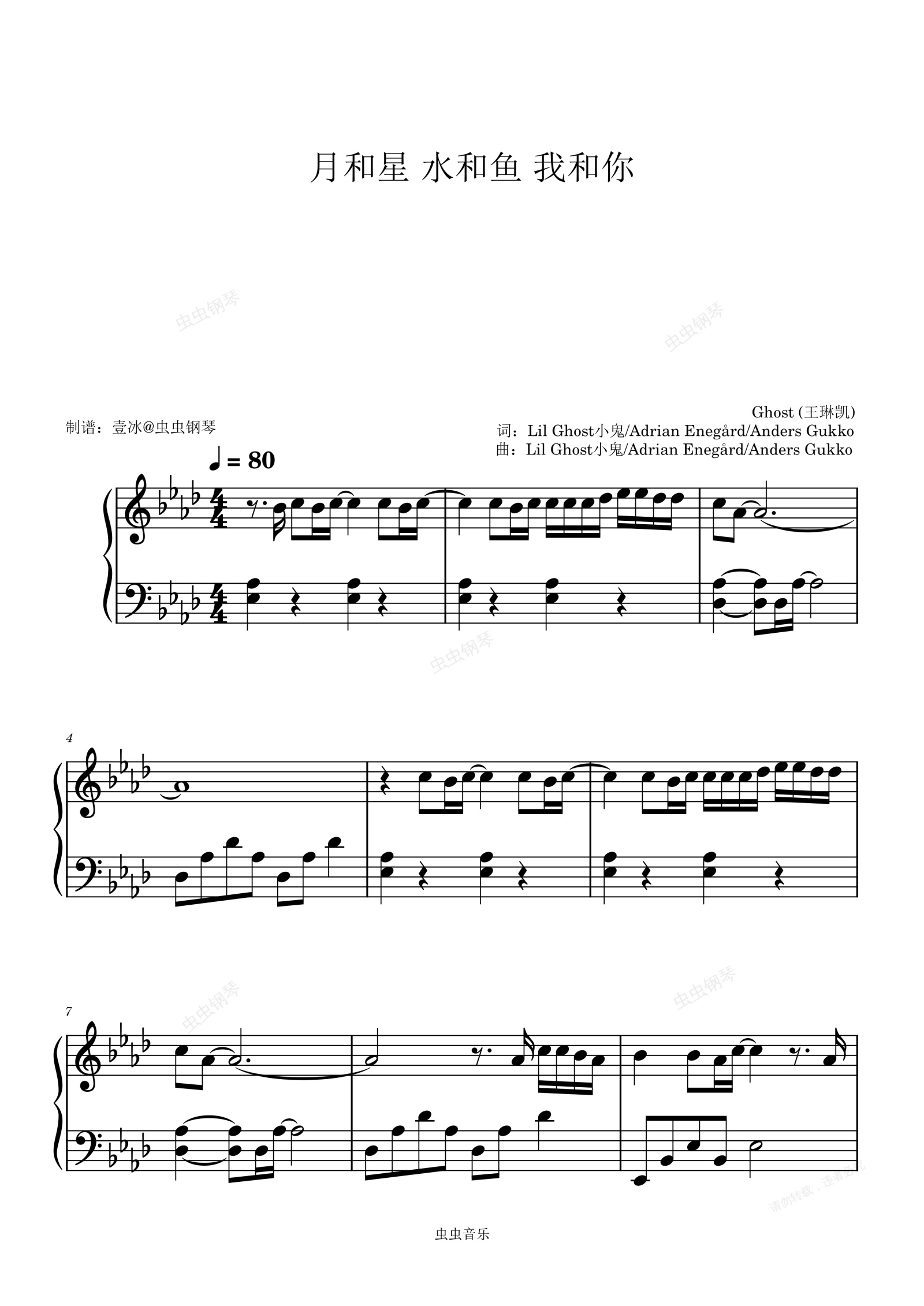 钢琴谱:月和星 水和鱼 我和你 - Ghost (王琳凯) 原调