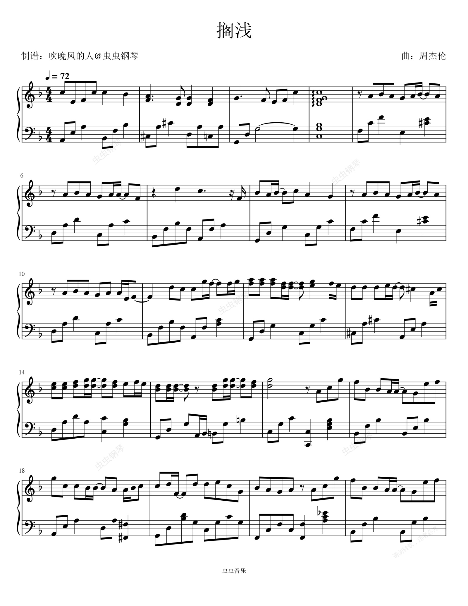 钢琴谱:周杰伦《搁浅》F大调
