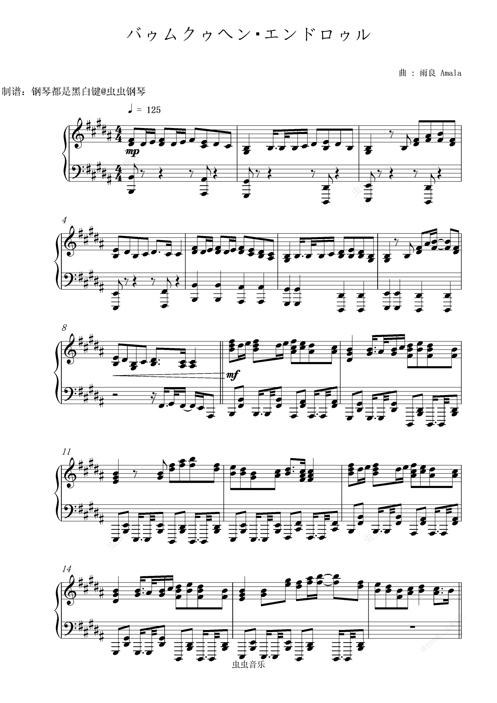 钢琴谱:【初音/重音/亚北】年轮蛋糕/バゥムクゥヘン・エンドロゥル