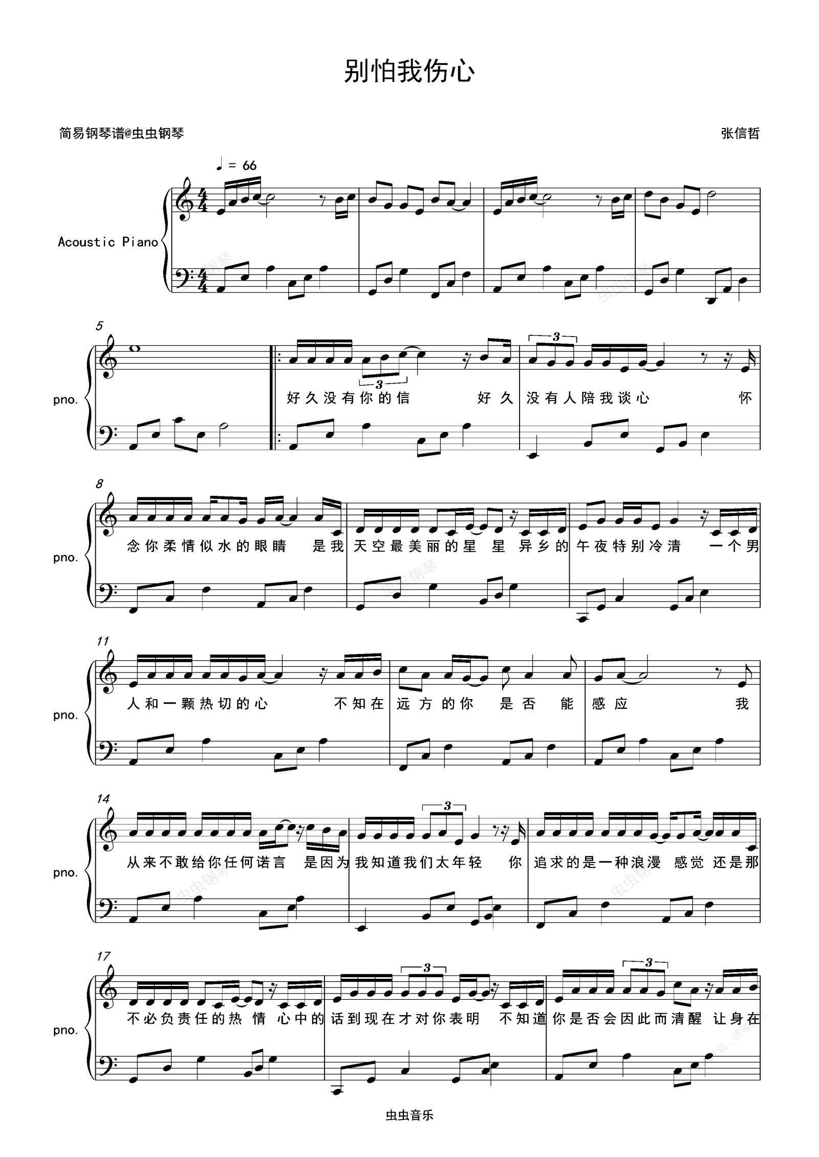 钢琴谱:别怕我伤心-张信哲 C调独奏