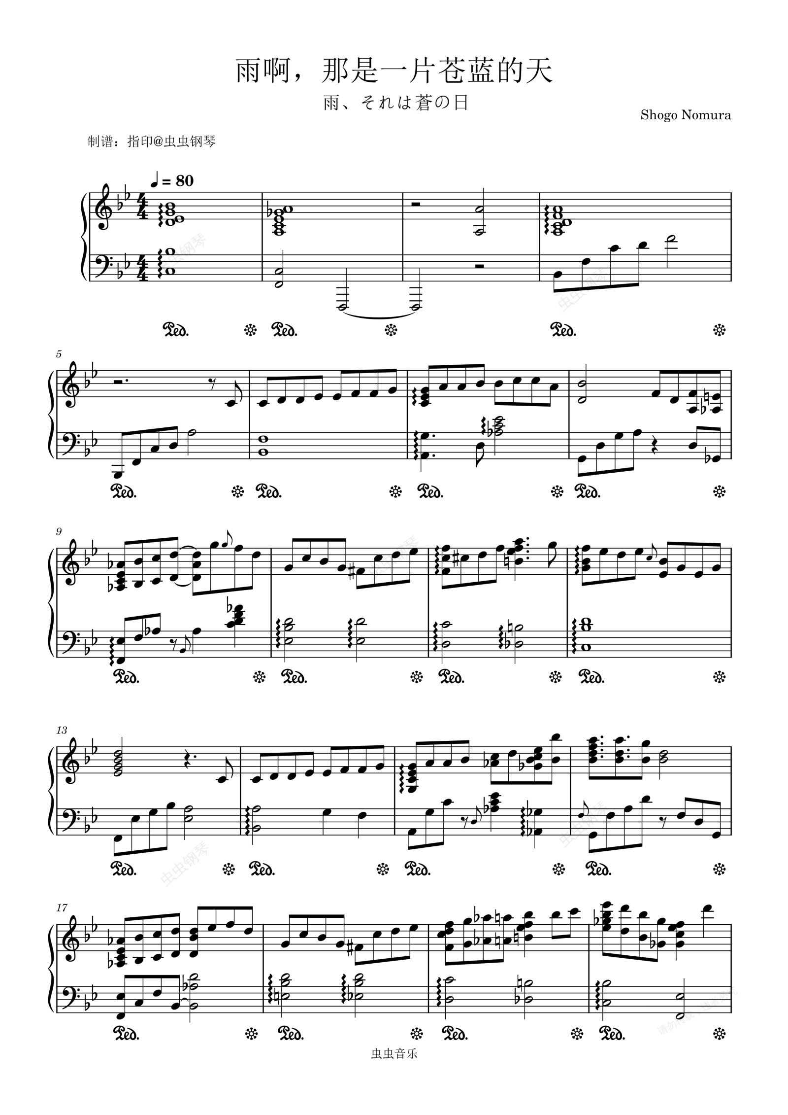 钢琴谱:唯美治愈《雨啊,那是一片苍蓝的天》