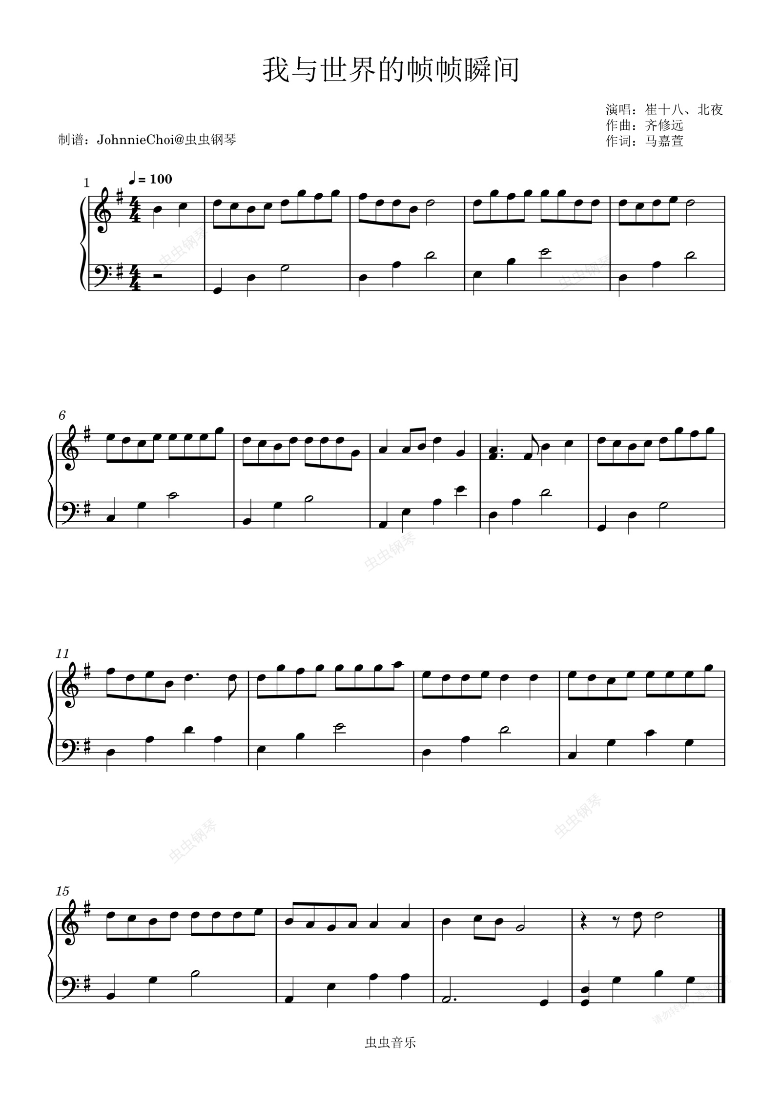 钢琴谱:我与世界的帧帧瞬间-崔十八、北夜-副歌