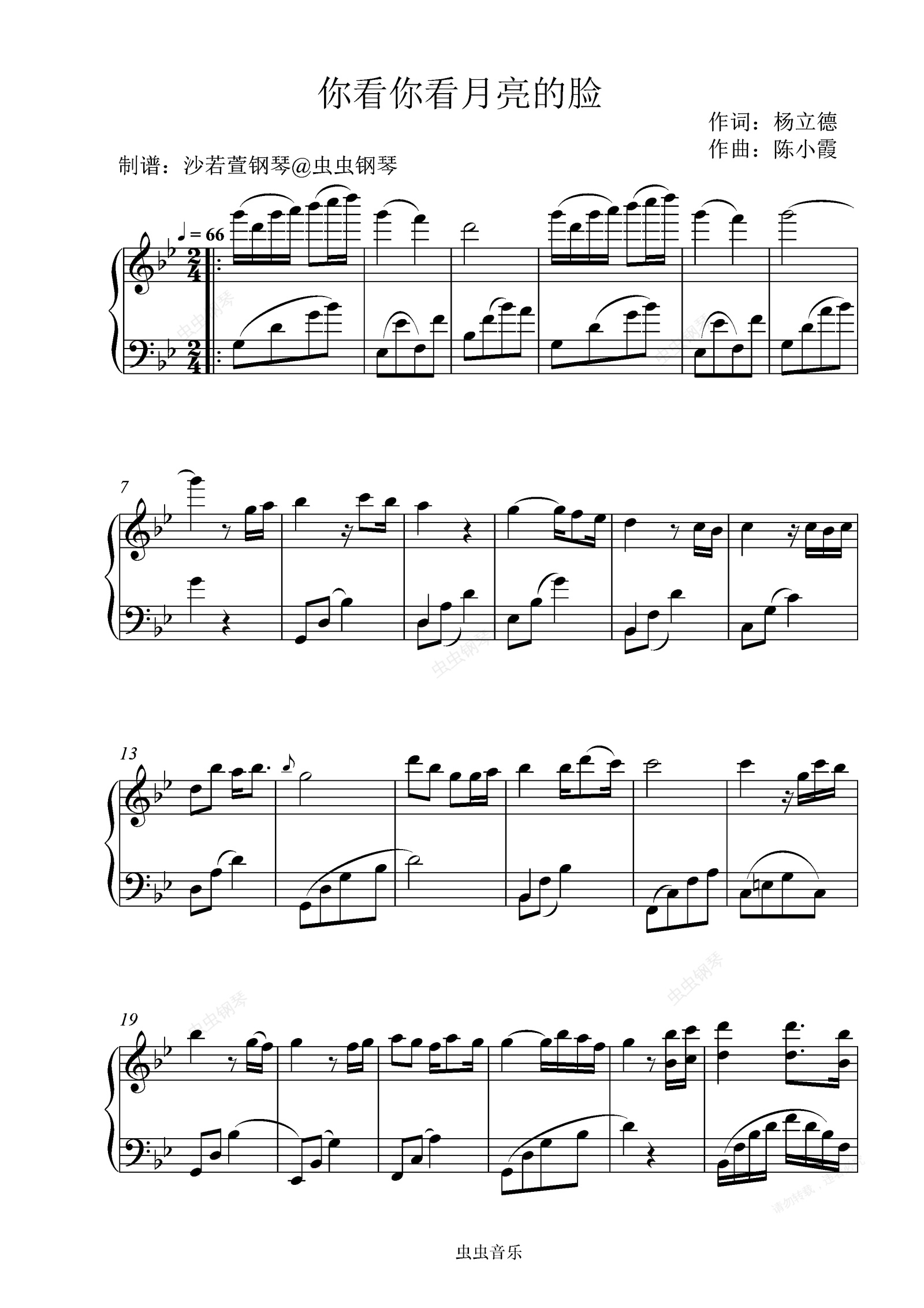 钢琴谱:你看你看月亮的脸完整版