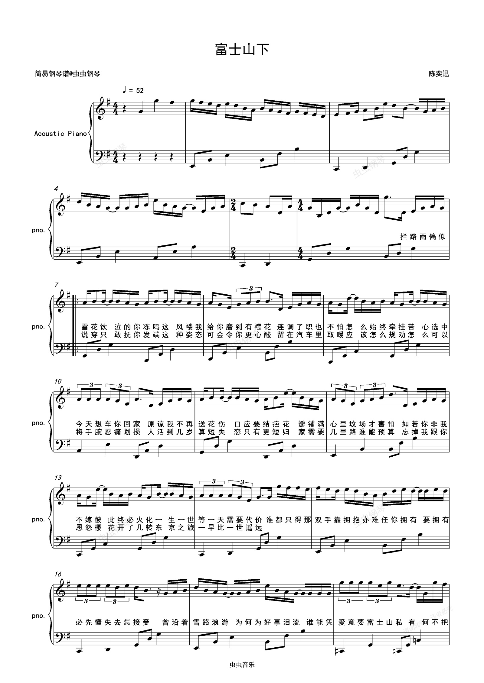 钢琴谱:富士山下-陈奕迅 G调独奏