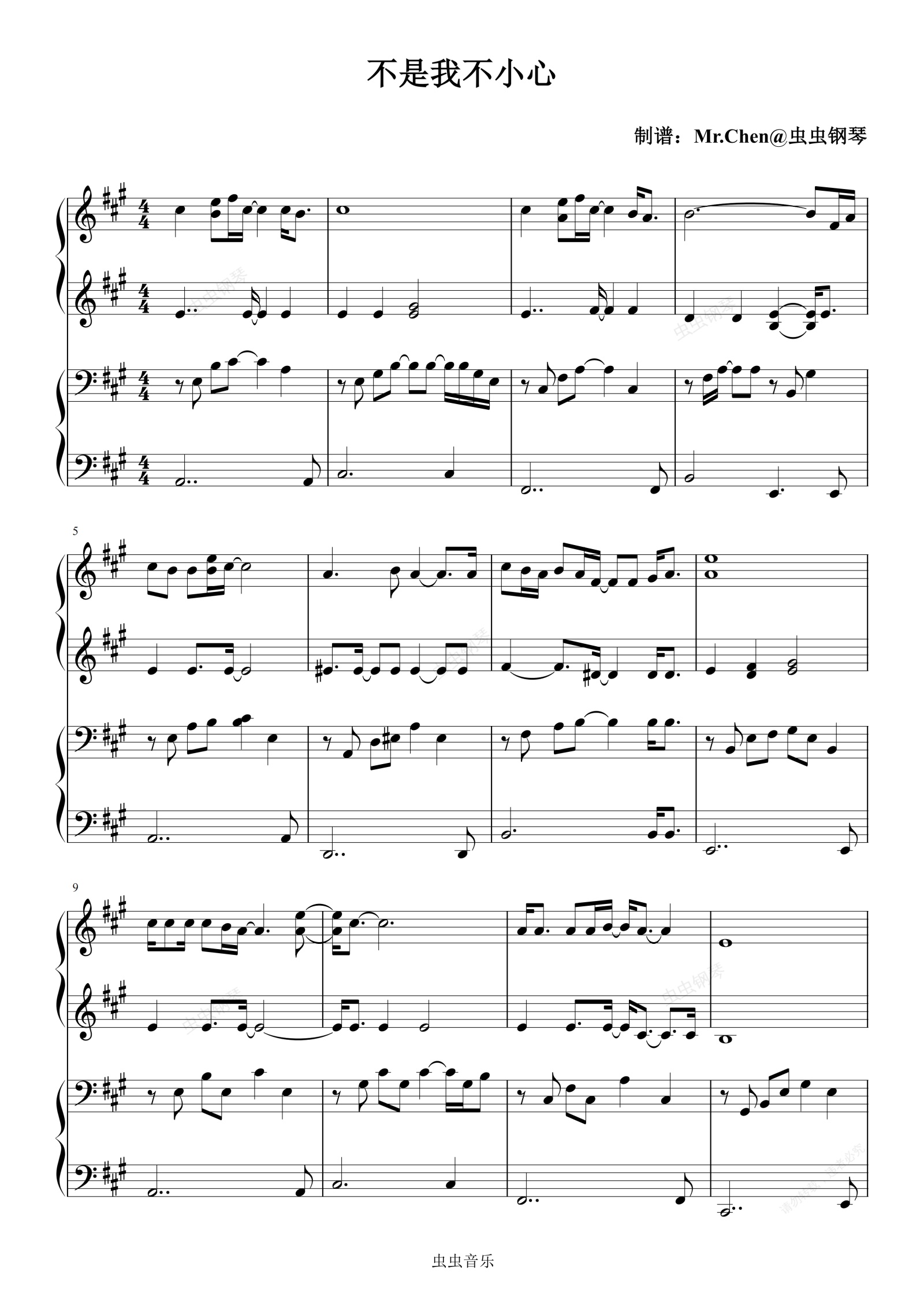 钢琴谱:不是我不小心 (四手联弹)- 张镐哲