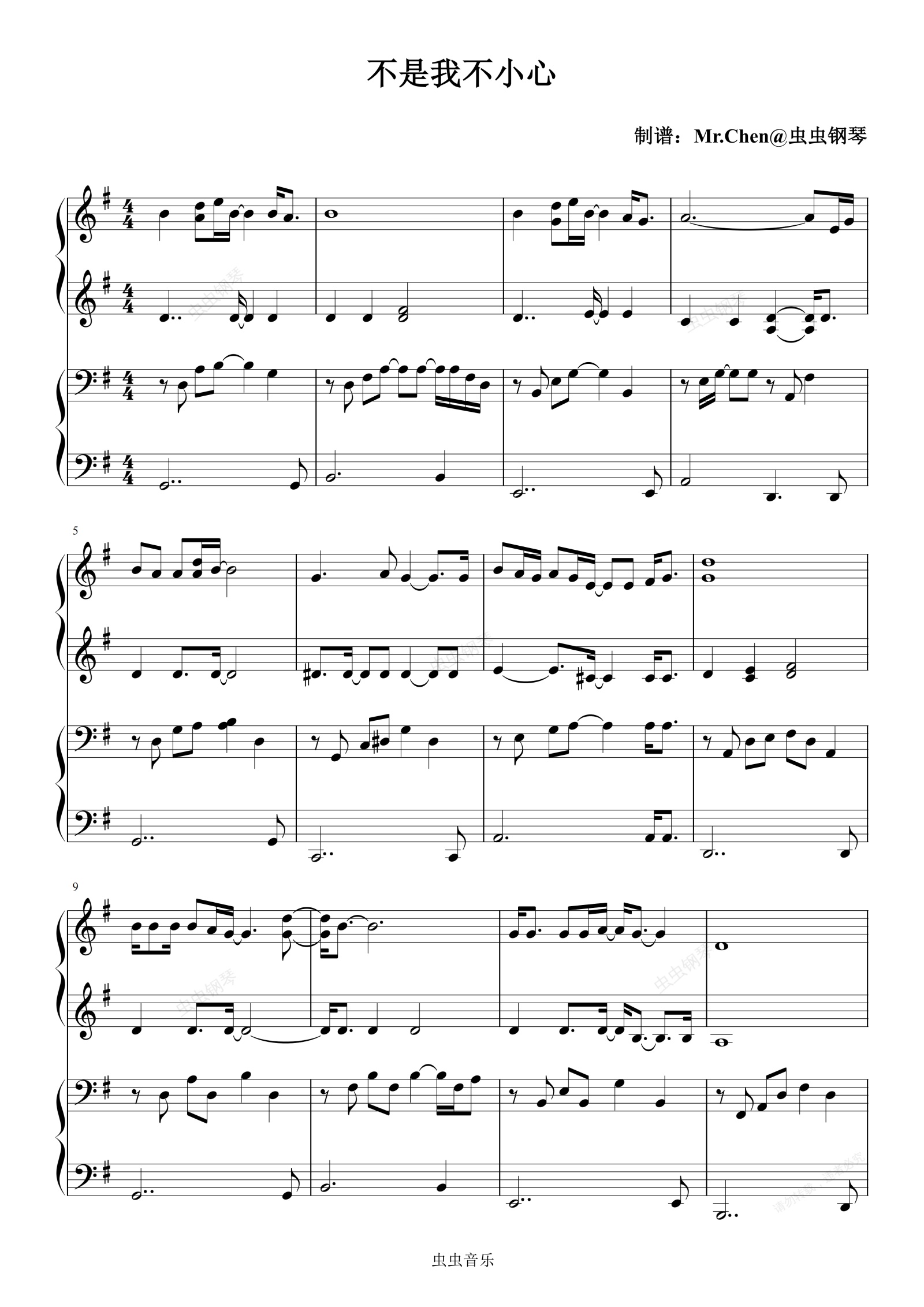 钢琴谱:不是我不小心 (四手联弹)G调 - 张镐哲