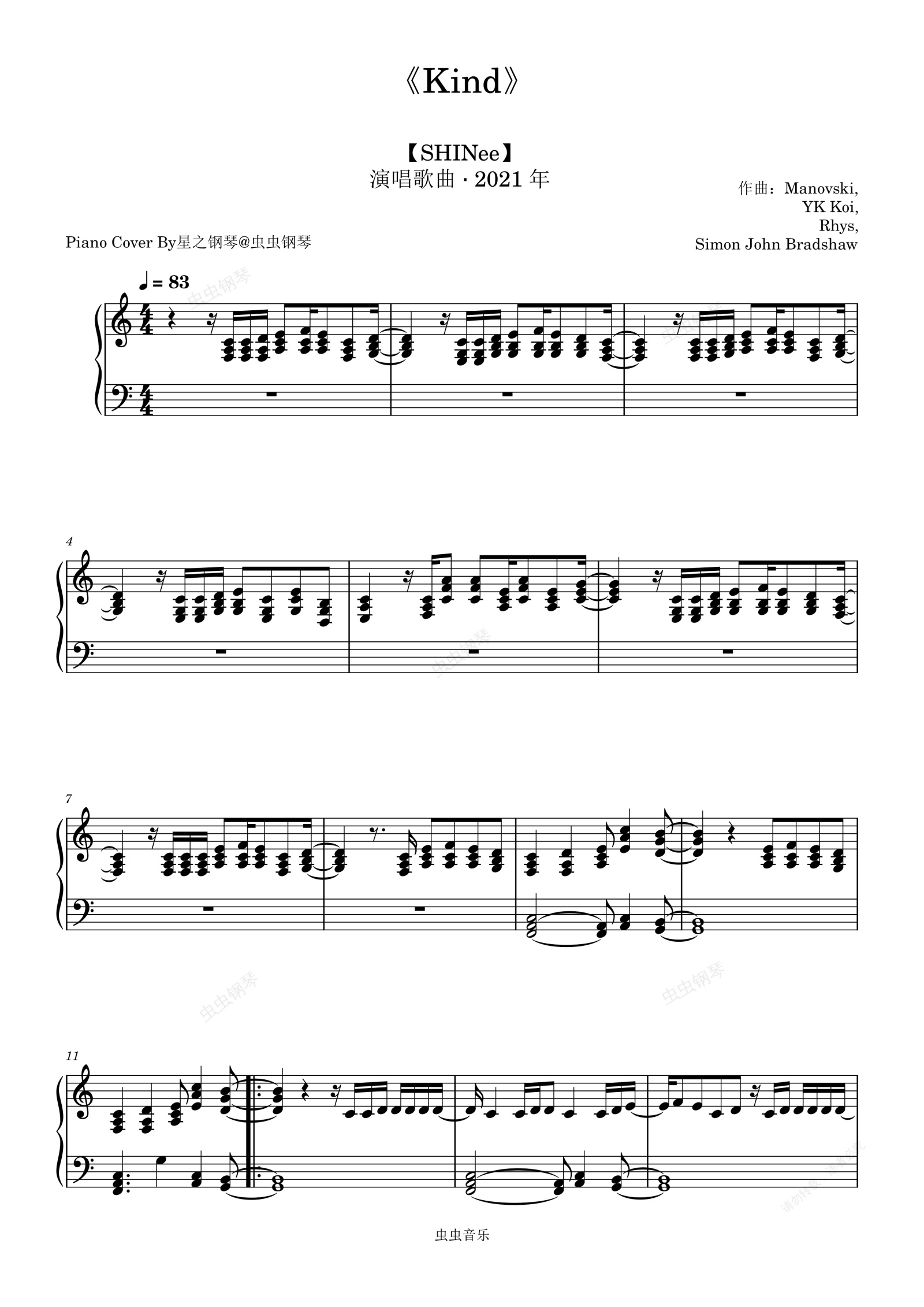 钢琴谱:【SHINee】《Kind》钢琴独奏版~星之钢琴~