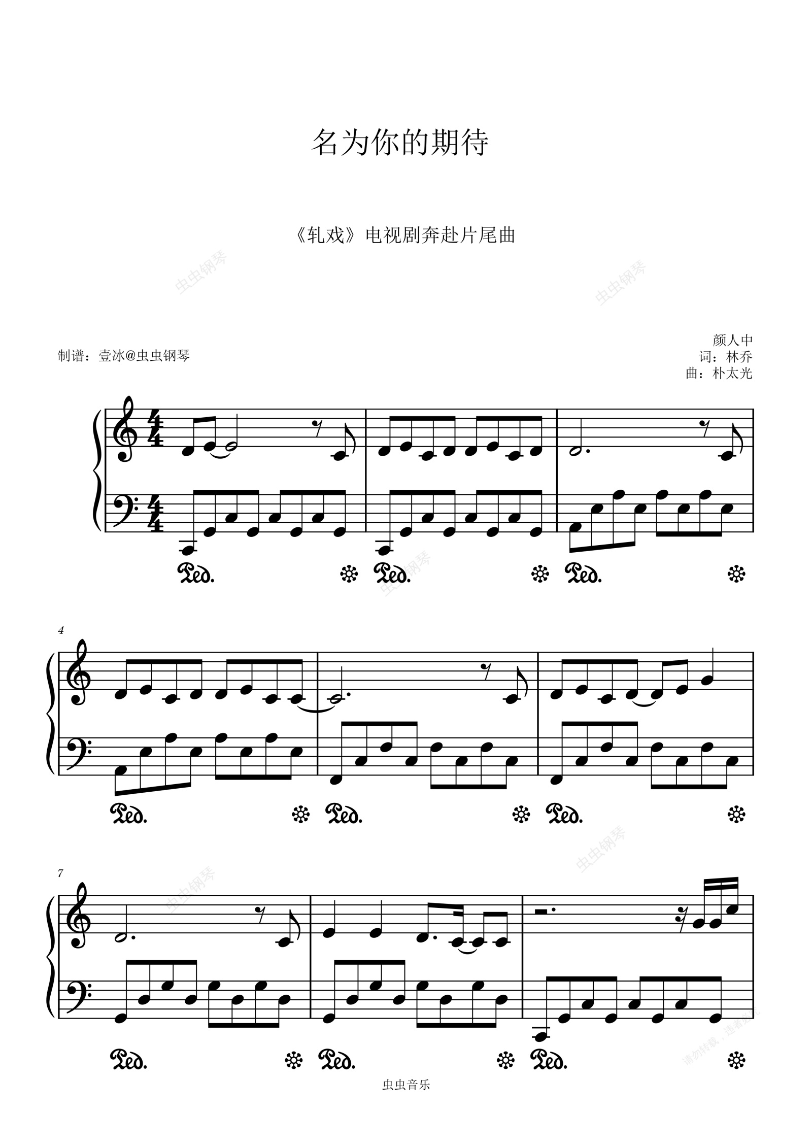 钢琴谱:名为你的期待 (《轧戏》电视剧奔赴片尾曲) - 颜人中 C调