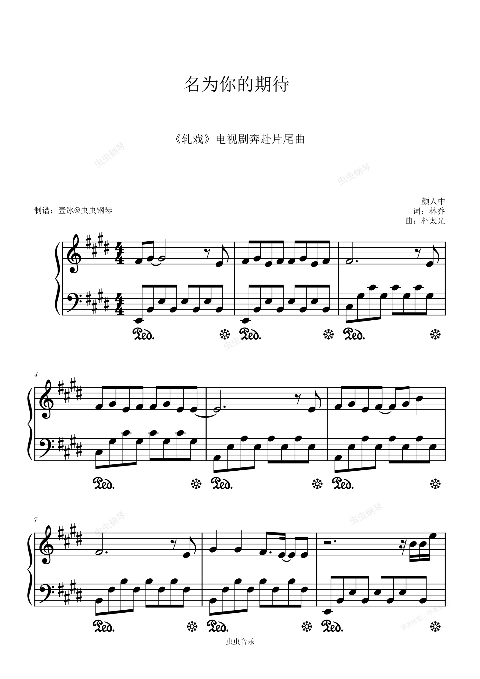 钢琴谱:名为你的期待 (《轧戏》电视剧奔赴片尾曲) - 颜人中 原调