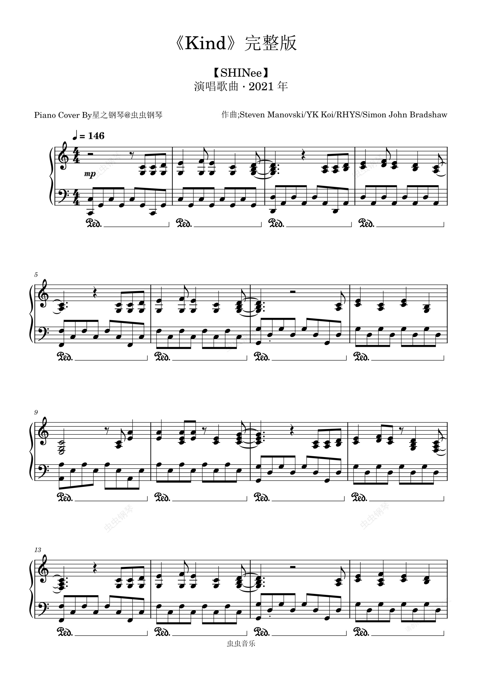 钢琴谱:【SHINee】《Kind》完整钢琴独奏版~星之钢琴~