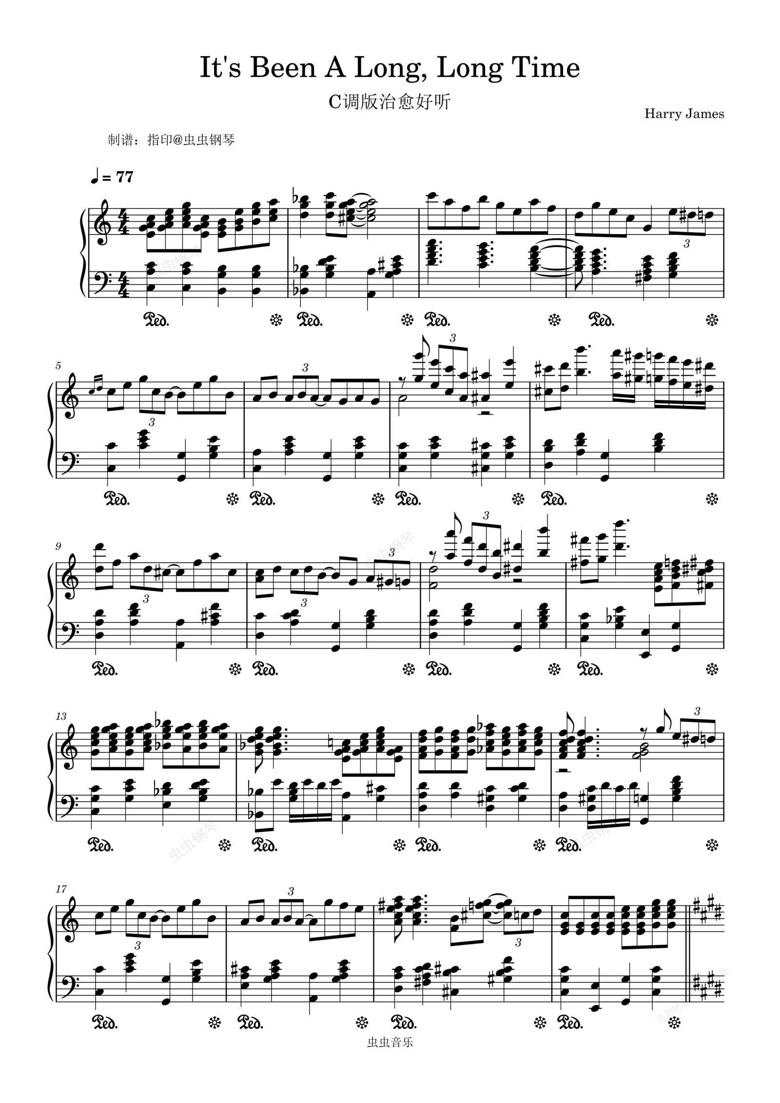 钢琴谱:C调版好听治愈《It's Been A Long, Long Time》