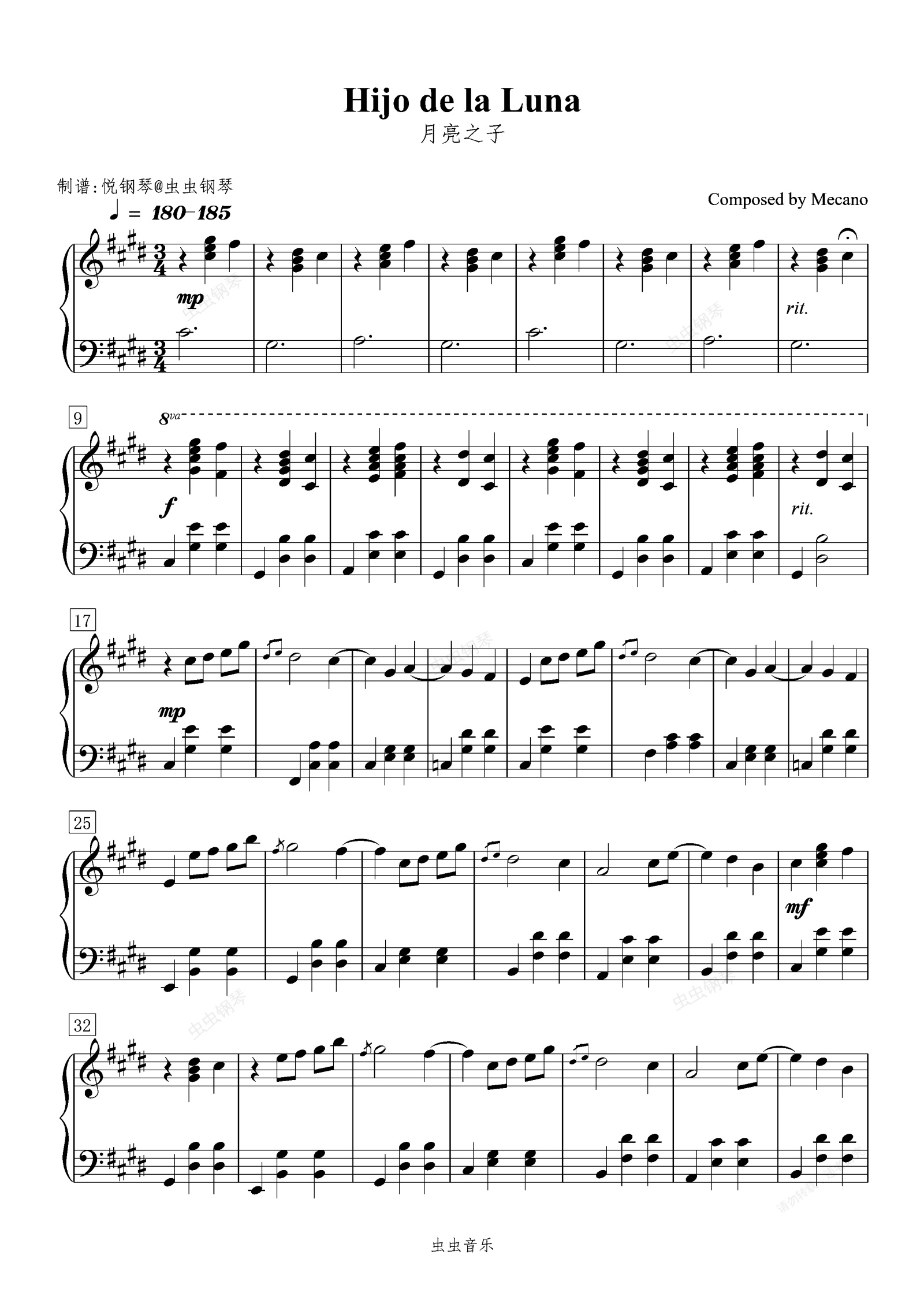 钢琴谱:月亮之子/Hijo de la Luna 【激情】