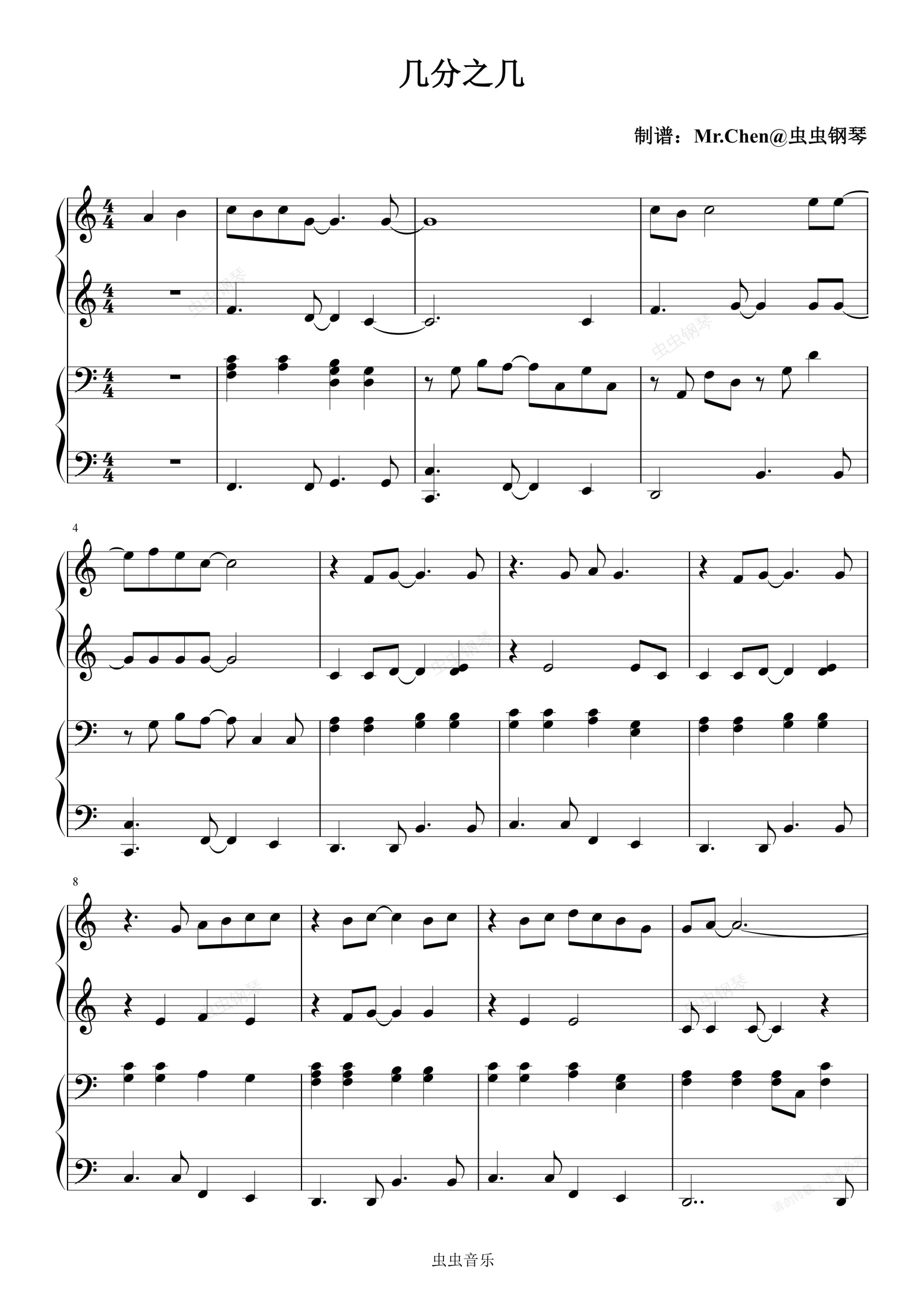 钢琴谱:几分之几 (四手联弹)C调 - 卢广仲