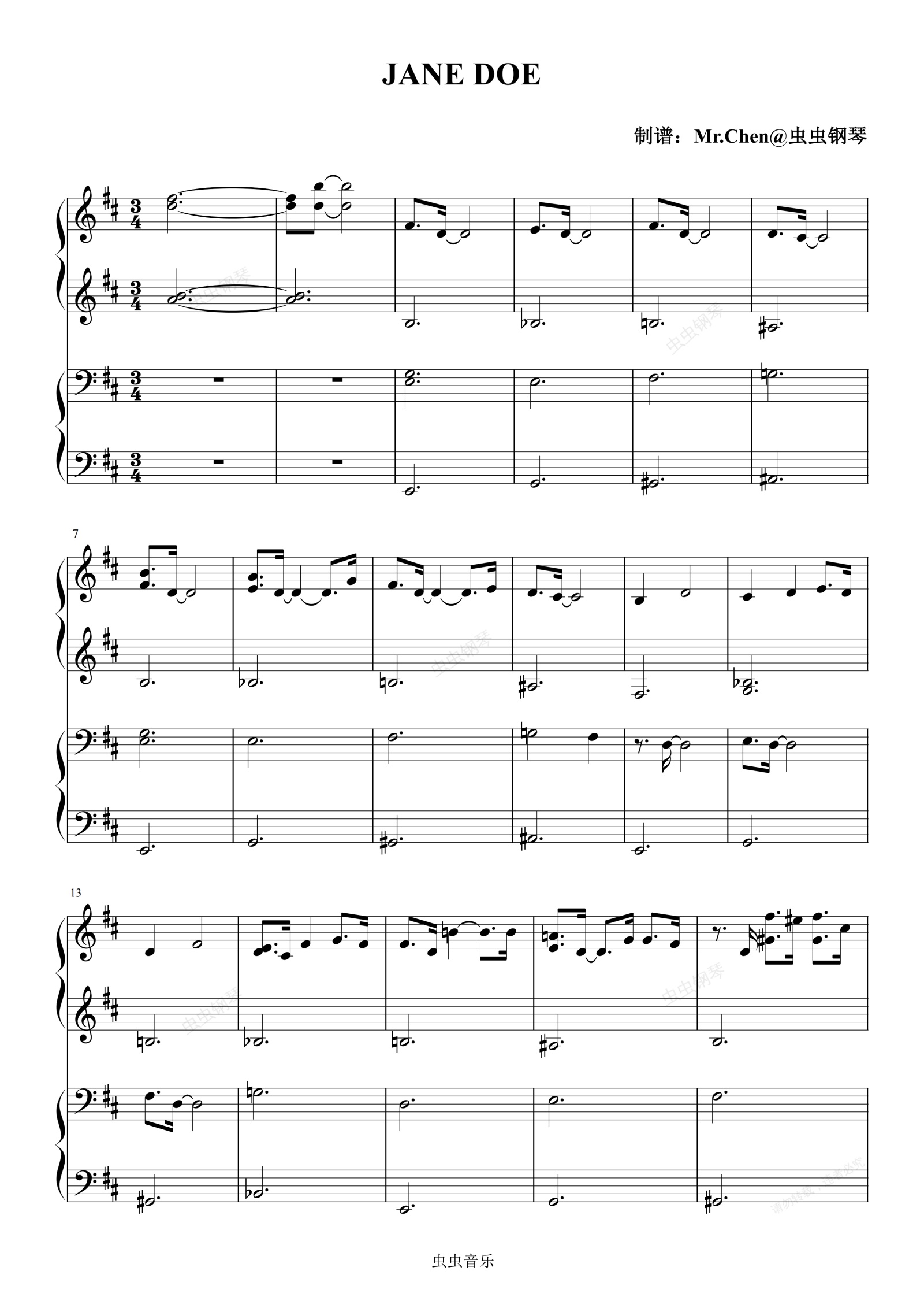 钢琴谱:JANE DOE (四手联弹)- 动画《电锯人:蕾塞篇》片尾曲