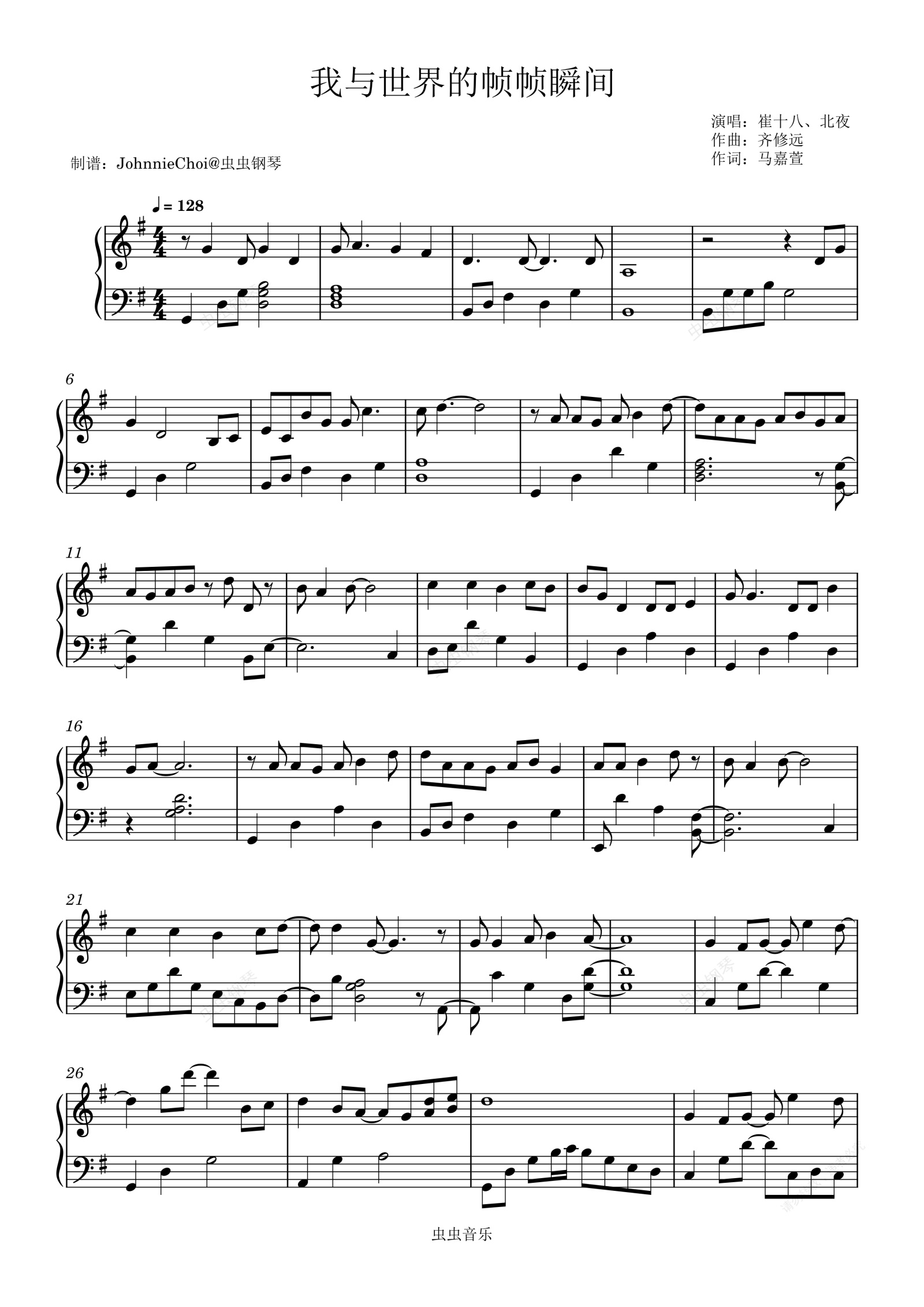 钢琴谱:我与世界的帧帧瞬间-崔十八、北夜-完整版