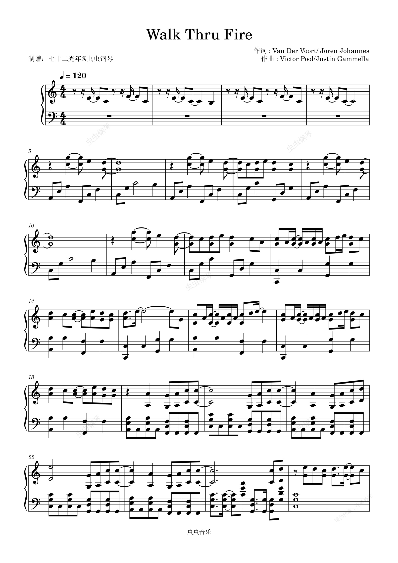 钢琴谱:Walk Thru Fire