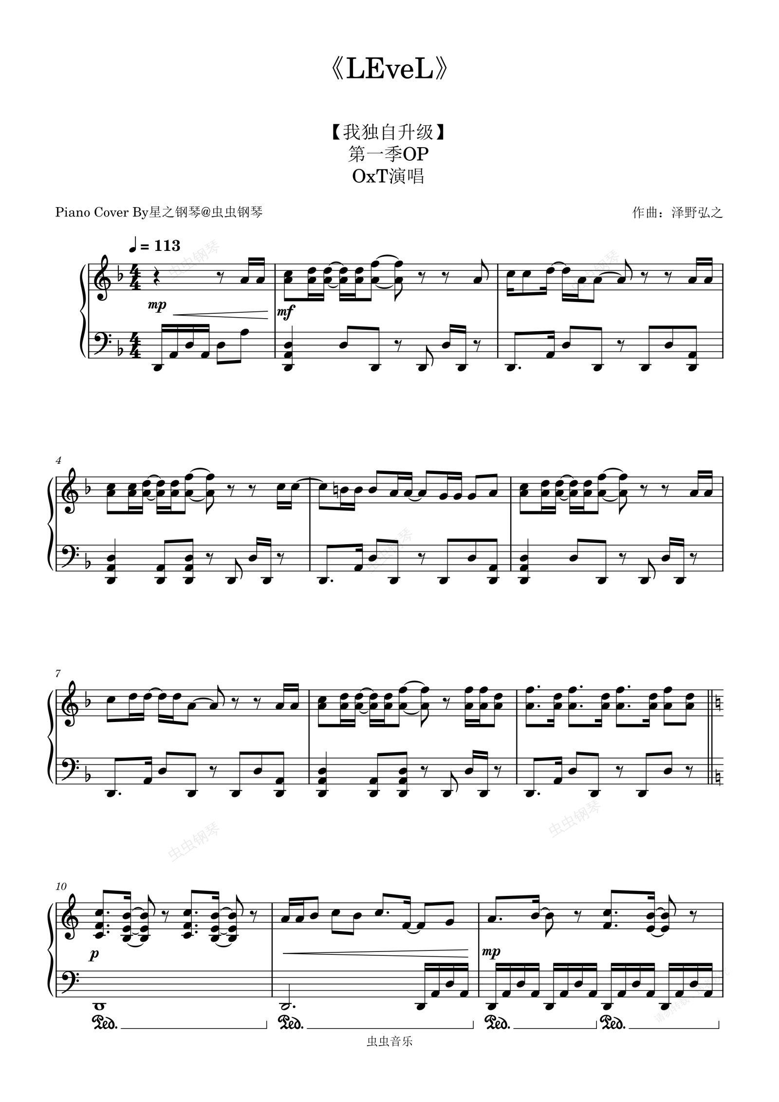 钢琴谱:【我独自升级-泽野弘之】《LEveL》钢琴华丽独奏版~星之钢琴~