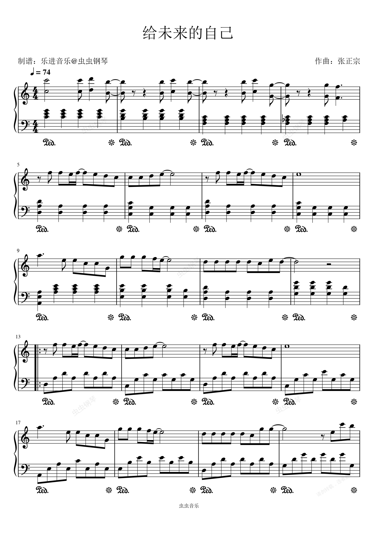 钢琴谱:《给未来的自己》C调简易版