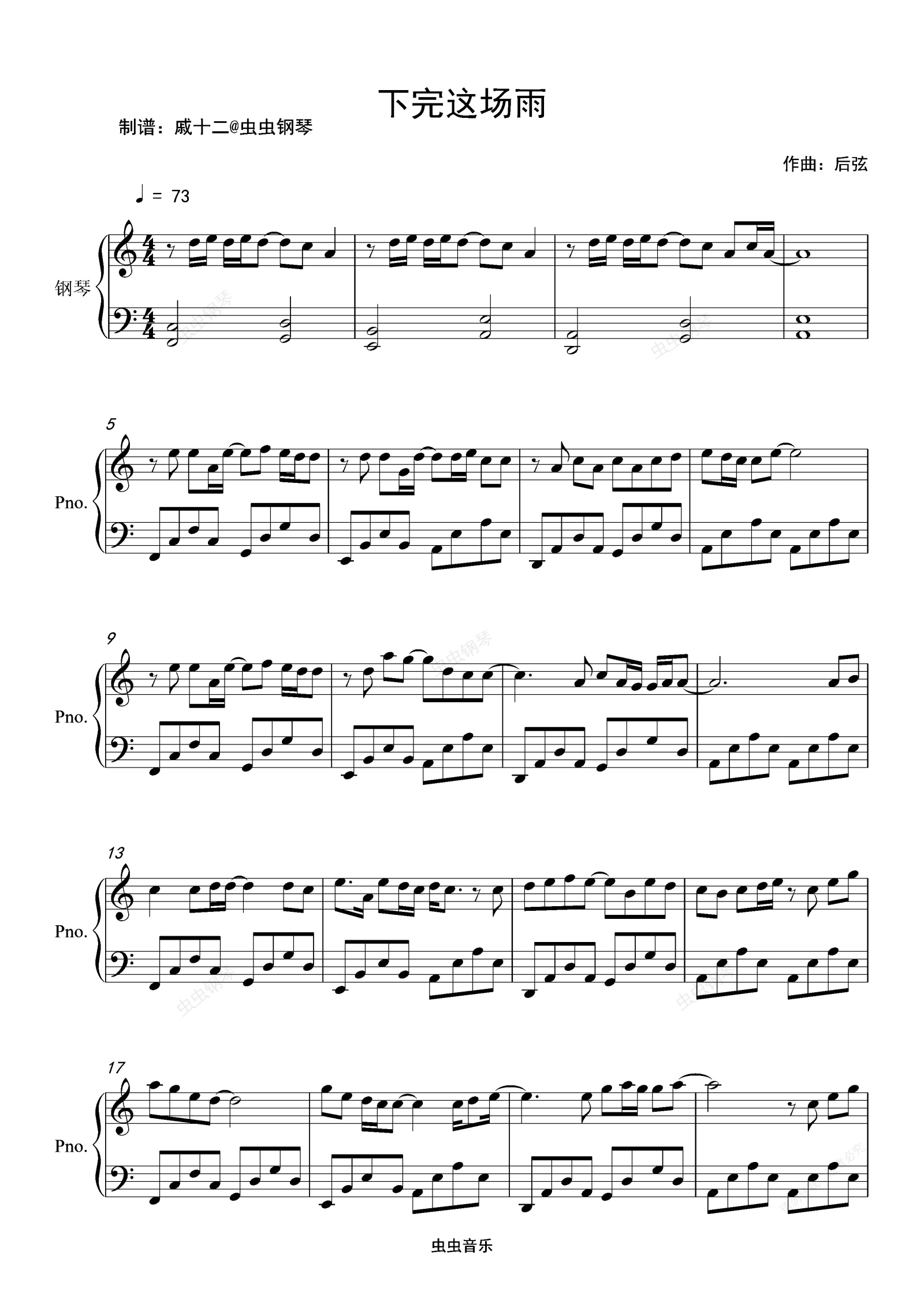 钢琴谱:下完这场雨-C调简单版