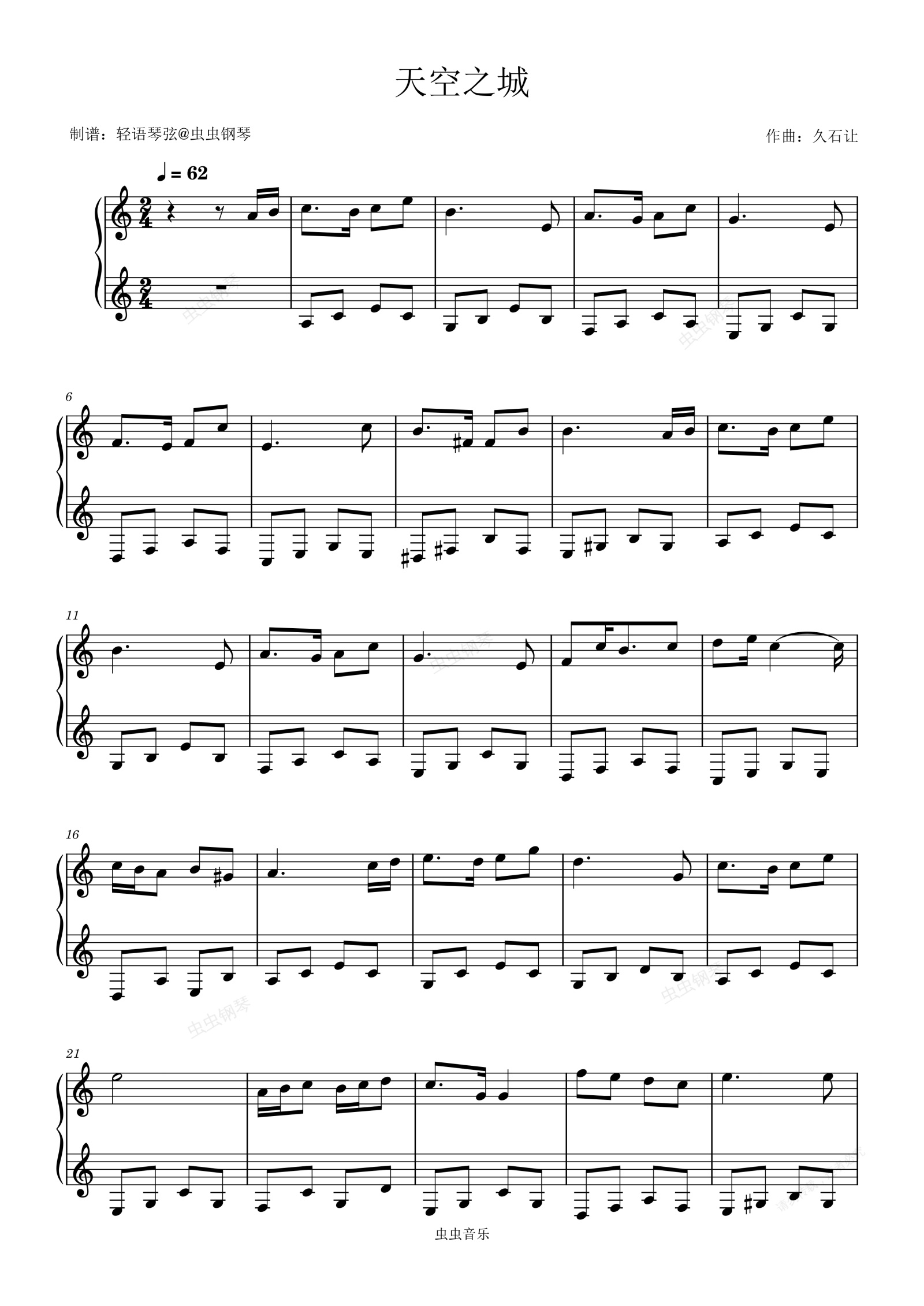 钢琴谱:天空之城—小手简化版
