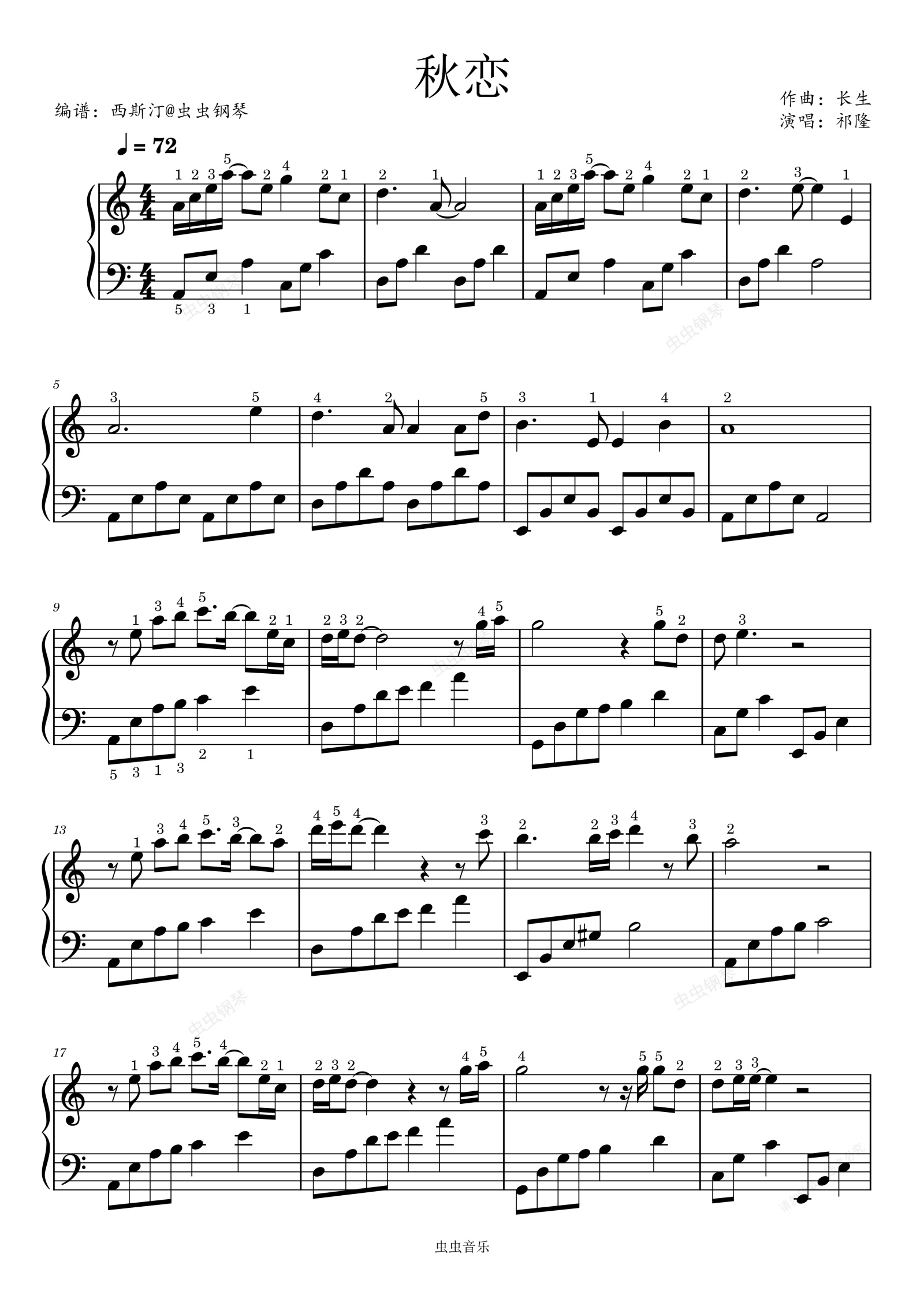 钢琴谱:秋恋(a小调优美版带详细指法)