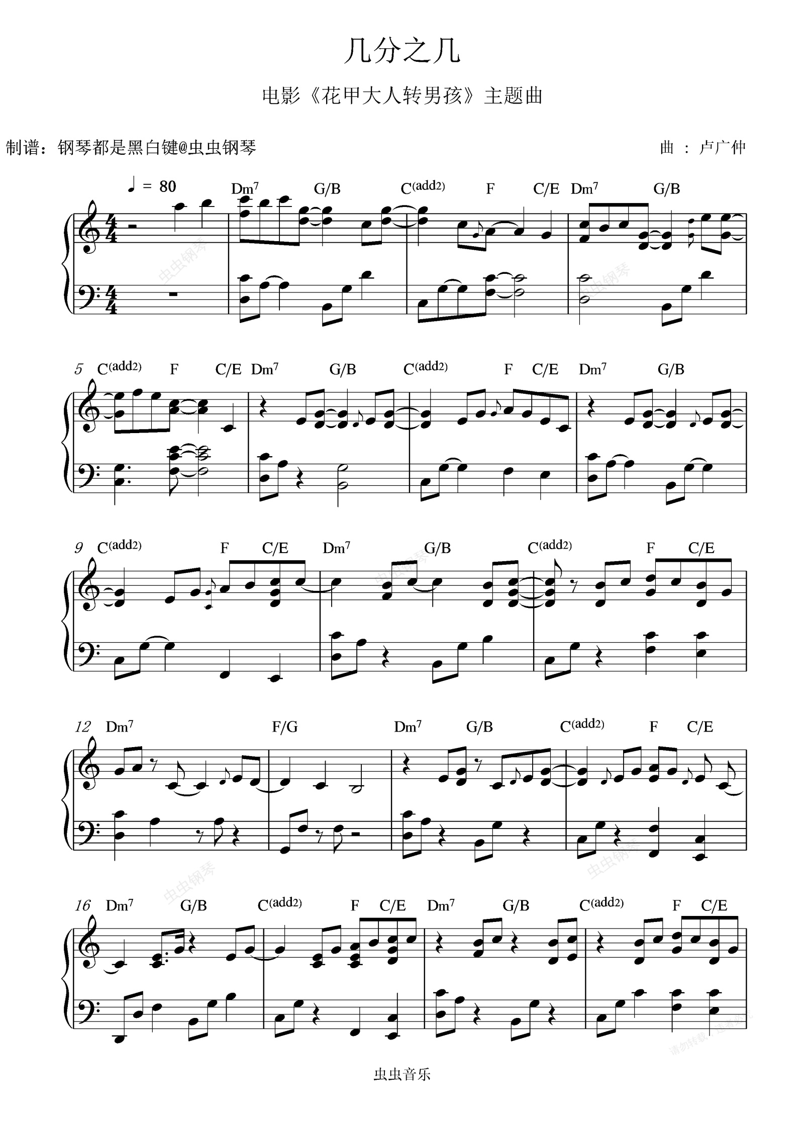 钢琴谱:几分之几 -附带和弦标记(电影《花甲大人转男孩》主题曲)