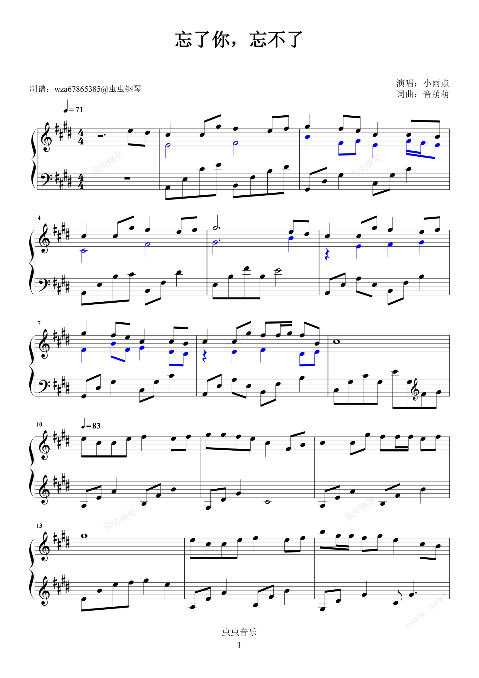 钢琴谱:忘了你,忘不了