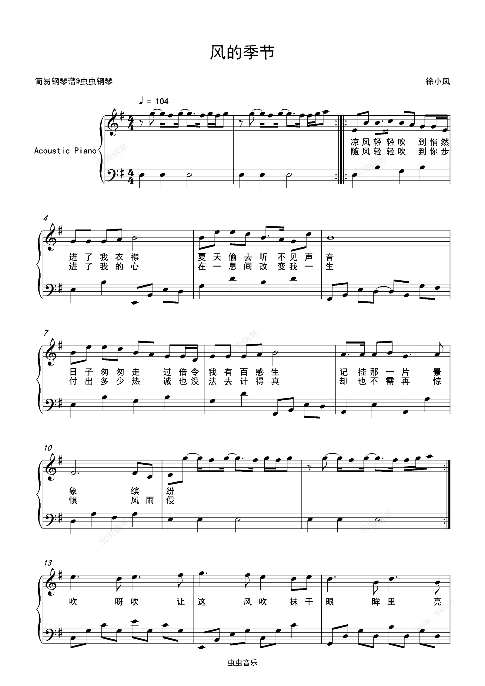 钢琴谱:风的季节-徐小凤 G调独奏