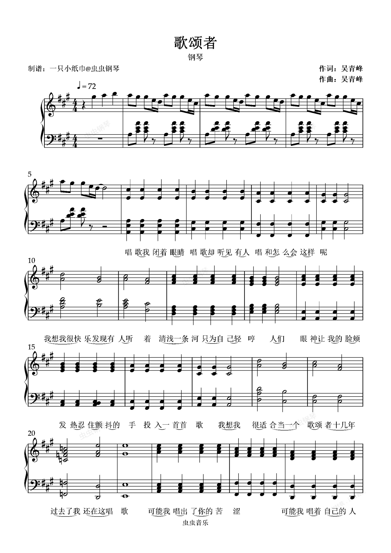 钢琴谱:歌颂者--吴青峰 超好听简单弹唱版