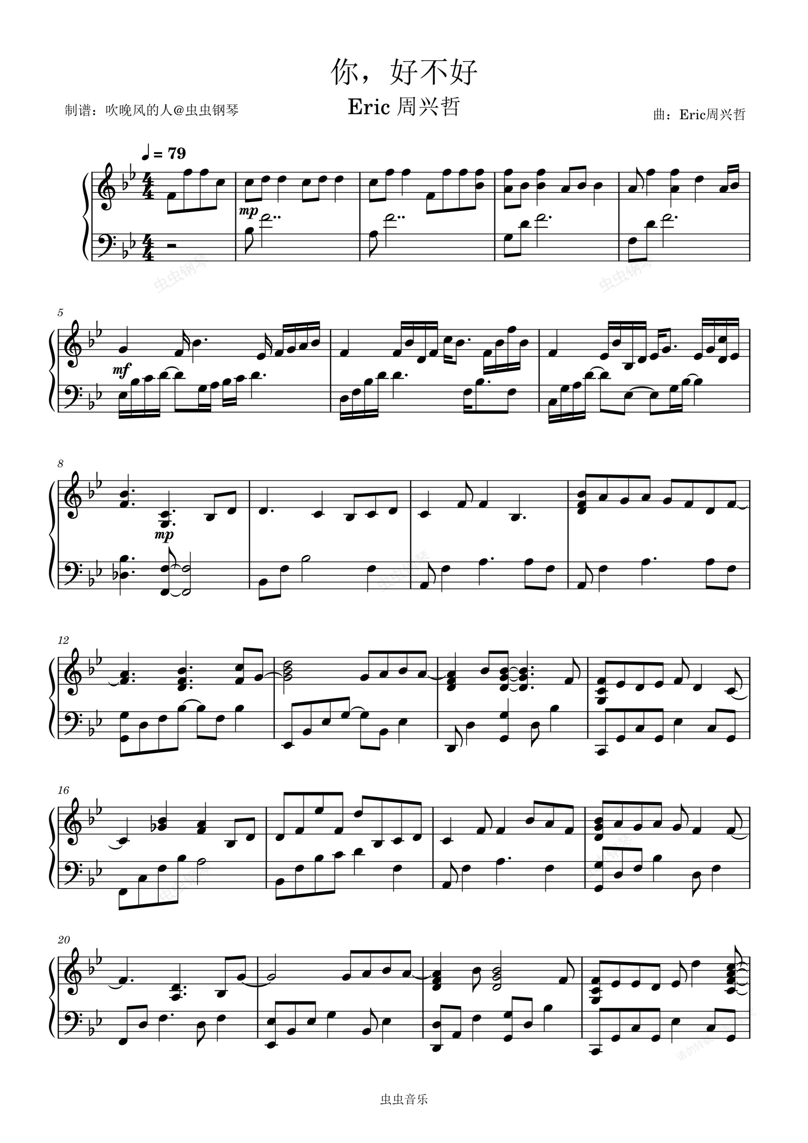 钢琴谱:遗憾拼图周兴哲《你,好不好》降B大调独奏版