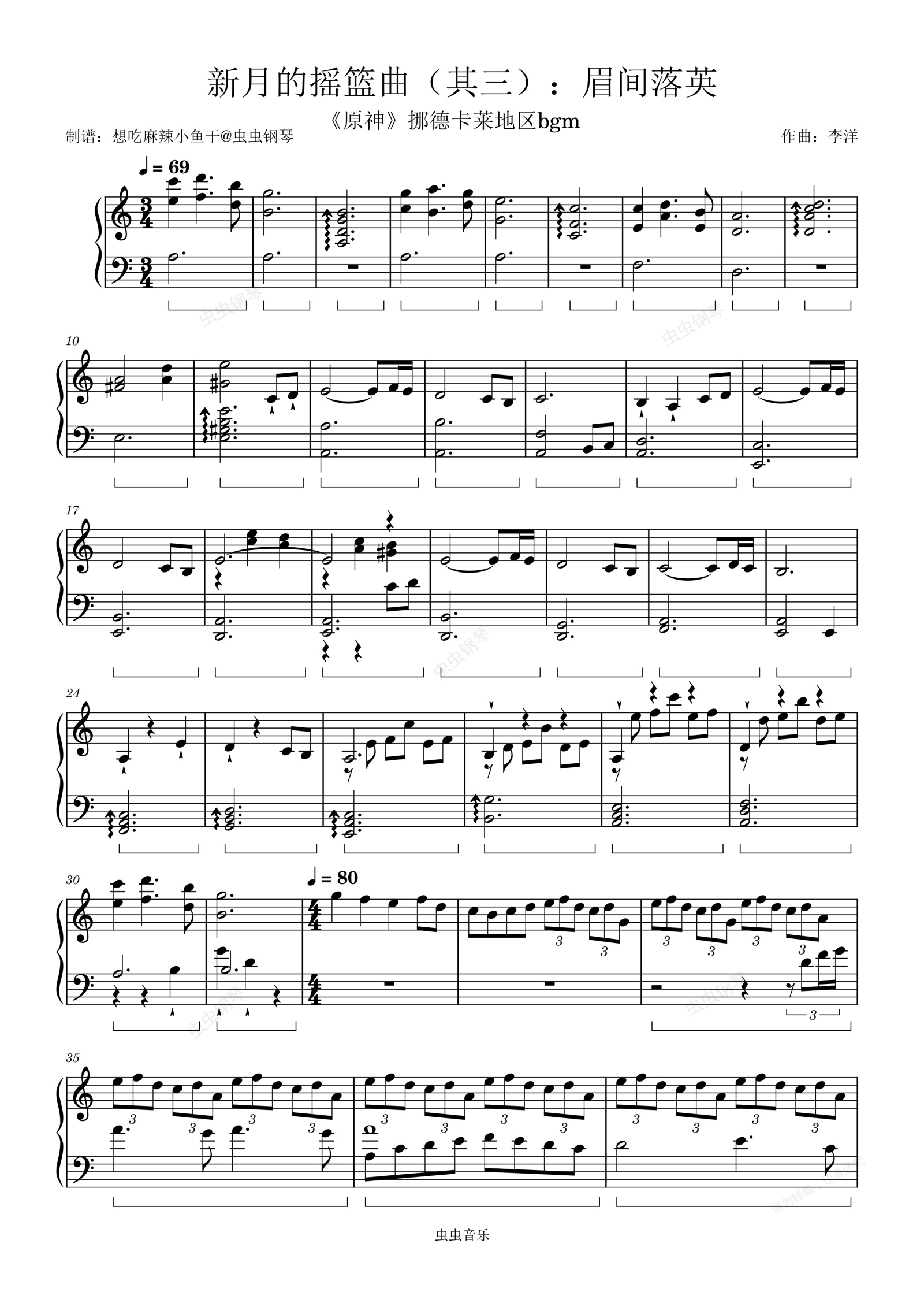 钢琴谱:新月的摇篮曲(其三):眉间落英